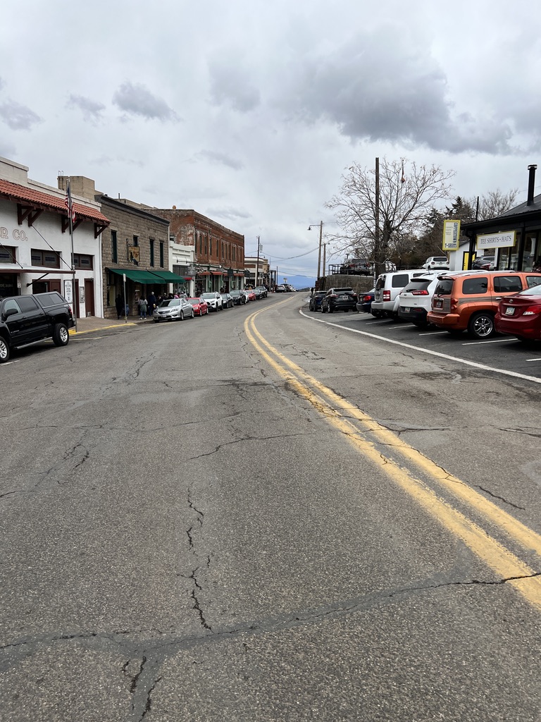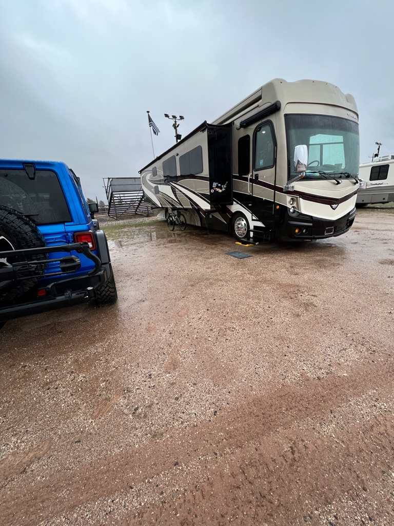 Wednesday we drove to Deadhorse State Park to try our hand at fishing in 1 of the 3 ponds in the park. As we were doing our best, a man who had been fishing to our left, called over and asked if we’d like some help. Of course we accepted. He spent about 15 minutes giving us casting pointers. He had such an easy cast, I can’t believe I’ll ever be able to match that. After he left, we were still practicing our casting when a man walked up from my right and said ‘you’re back casting too far’. We talked for about 30 minutes. His name was Randy and he works as a guide in Wyoming in the summer. He left, we practiced some more and called it a day. Still no fish. Thursday I took the single speed out to pre ride the 1st half of the race course. That was a tough ride. As I finished, the RV repair guys had shown up at the motorhome. They were early and they were there to make adjustments to the awning. The awning was hitting the slide out when the awning was being retracted. They spent about an hour and had it fixed. We highly recommend Currier Master Mobile RV repair. Friday I went out on the full suspension bike and pre rode the 2nd half of the race course. Afterwards we drove into old town historic Cottonwood and braved the wind and rain.