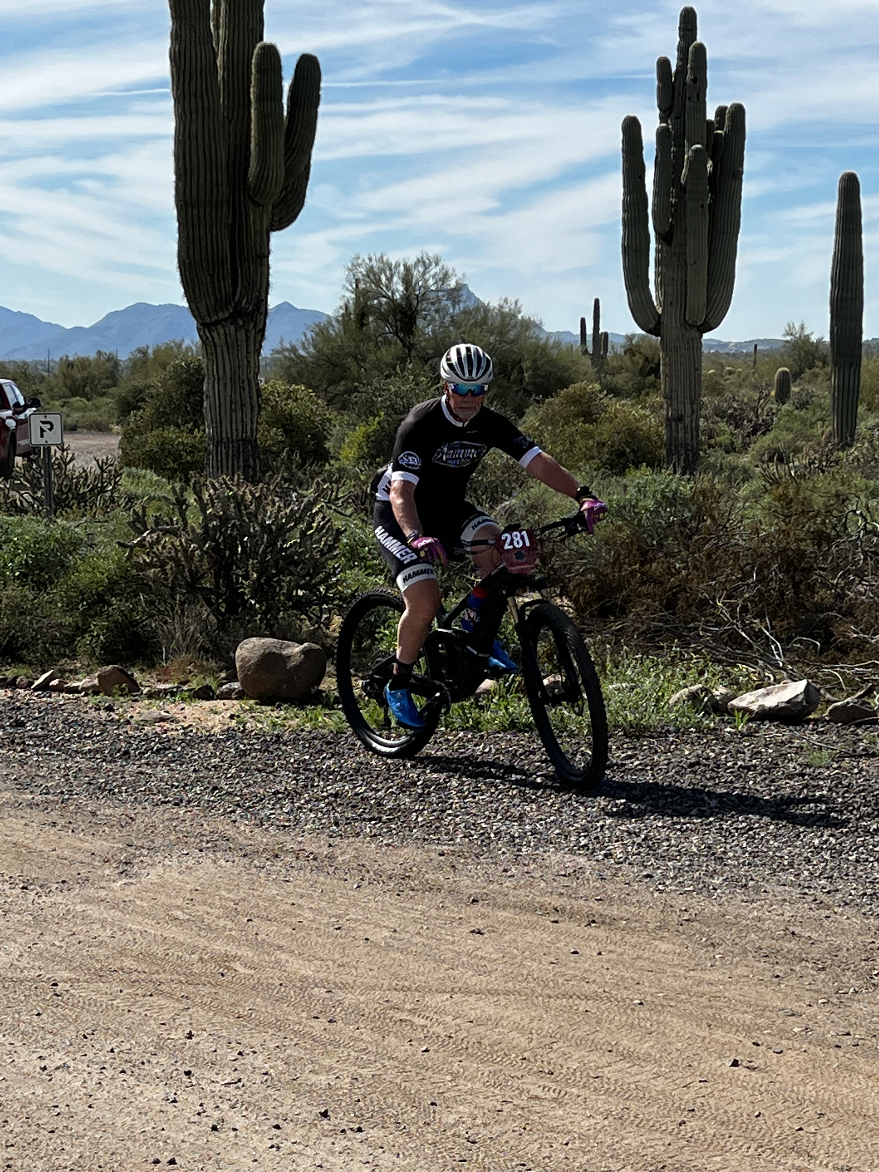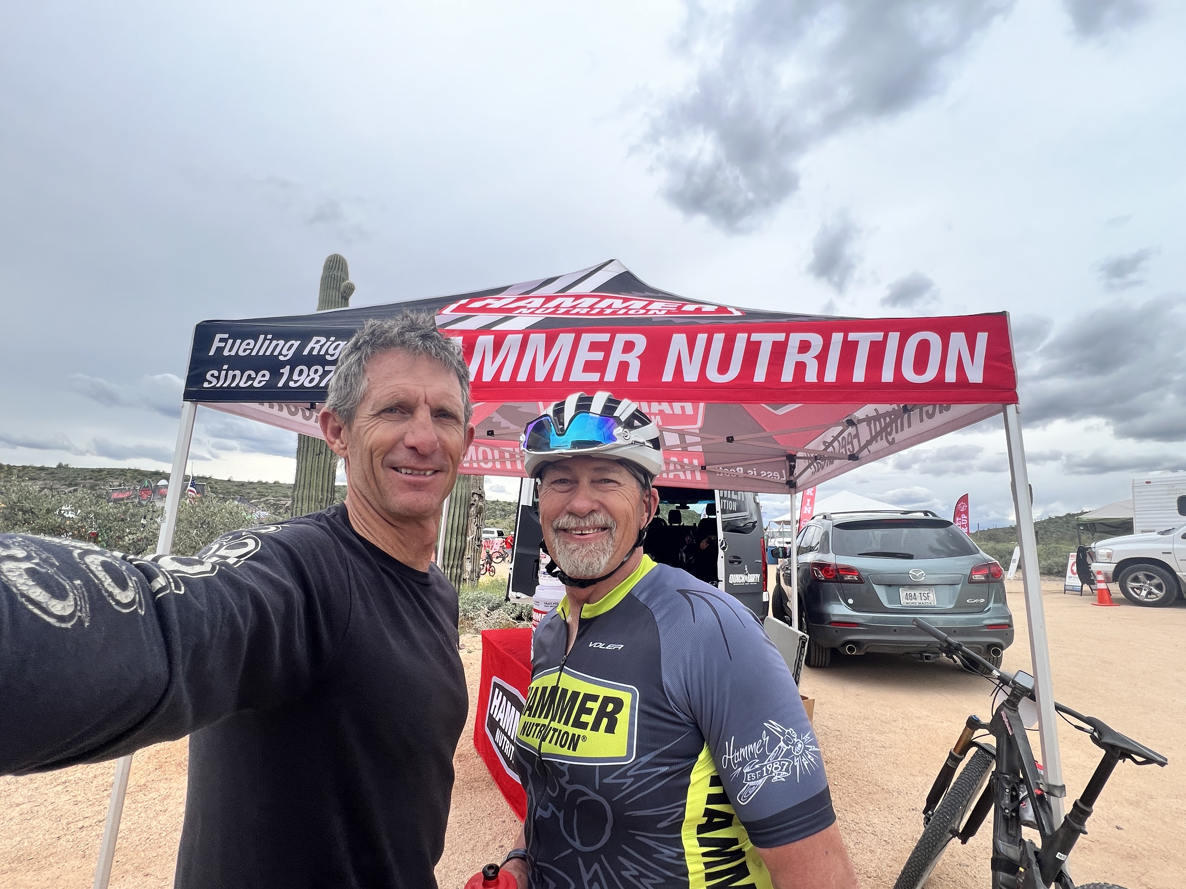 The Cactus Cup mtb race was the final race for me in the valley. I didn’t do as well as I would have liked in my placing or my finish times. My coach Kevin had to remind me we had changed my training program and he knew my expectations were too high, but he didn’t say anything so as to not deflate my balloon. After much discussion, I felt better as I had fulfilled the underlying goals. Hammer Nutrition has always been a big sponsor of this race. Had the opportunity to meet with some other Hammer sponsored riders as well. Cory is always a kick in the pants and we love hanging out with him. He does a great job keeping the bike suspension in tip top working condition as well. Stillwell Suspension is the name of the shop in Scottsdale. stillwellperformance.com