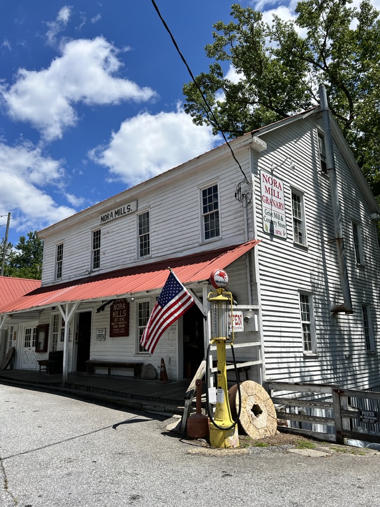 Helen, GA is a small, tourist attraction town with a strong Bavarian heritage. The shops are tourist souvenir style where you can buy almost anything with Helen printed on it. We did stop for lunch and the Bavarian pretzel and beer were delicious. For a bit of history, we stopped in at Nora Mills. This was a grain grinding mill that was water and wheel powered. Here they would grind up the grain to make cornmeal, grits and whole grains. In the store you had the opportunity to buy much of this. Betty’s Country store is a must see. A log cabin style grocery store is the primary grocery store in Helen. Down the road was the Fly shop. We stopped in to find out the best places to fish and the best type of flies to use. Several times we fished the Chattahoochee River near the RV park with varying success. One day I’d catch some, the next day Teri would. We couldn’t seem to walk away with both of us winning on any particular day. Our last day trip was to Murphy, NC to the Piney Knob Trails for a bike ride and hike.