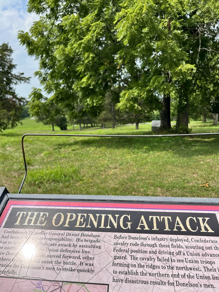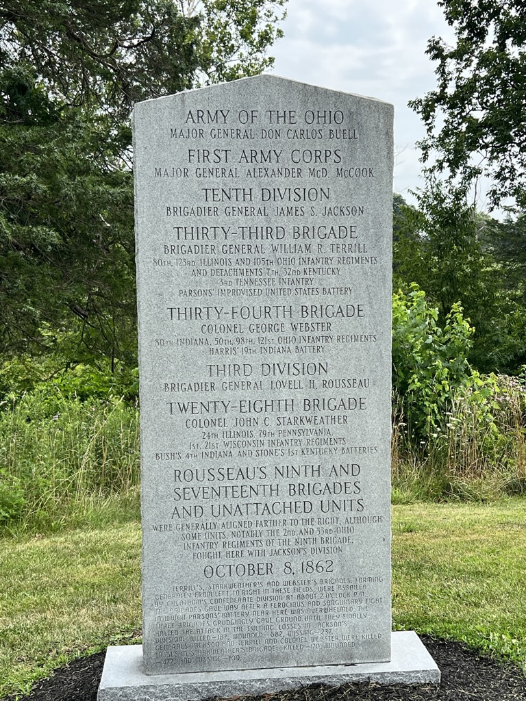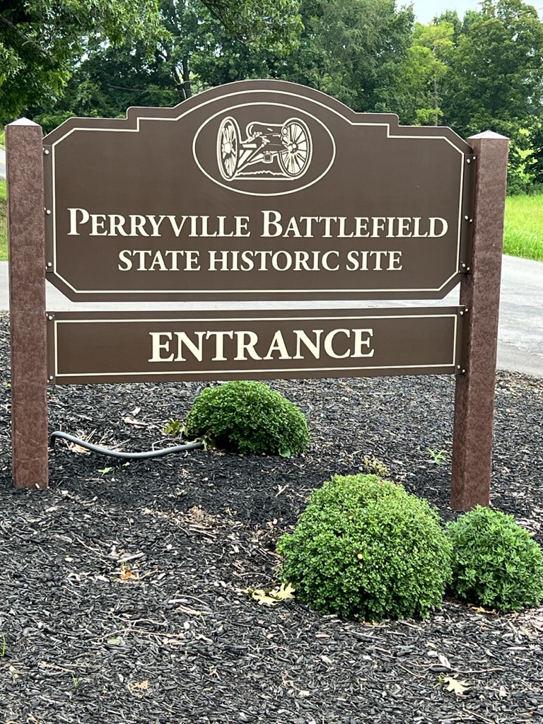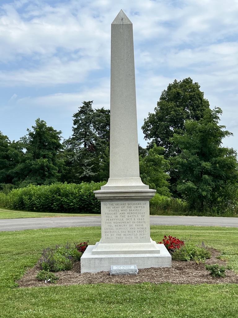 We had stopped in this area to tour Lexington. There were a lot of amazing historical buildings and historical markers all over. We dropped into the Perryville Battlefield State Historic Park and walked the battle lines seeing the hillside as the armies would have seen it during the Civil War. There were interpretive signs identifying the view and we found a cannon set on a hillside. There were 2 memorial markers on site. One was a memorial to the Confederate Soldiers of which many are buried in a mass grave on the site. The other was for the Union soldiers.