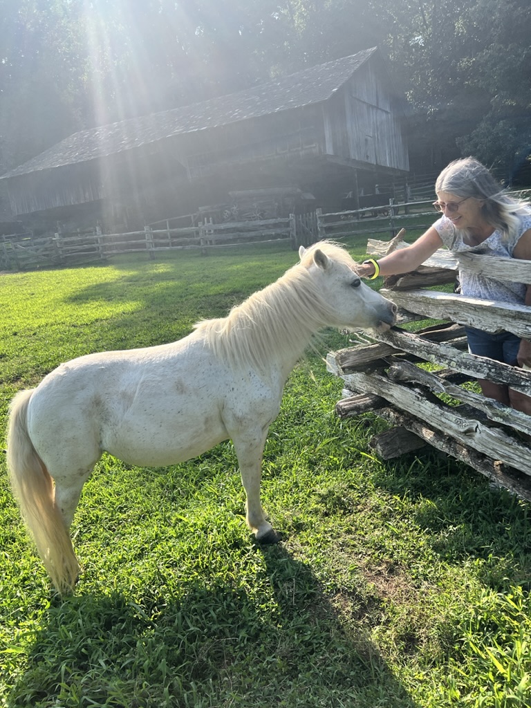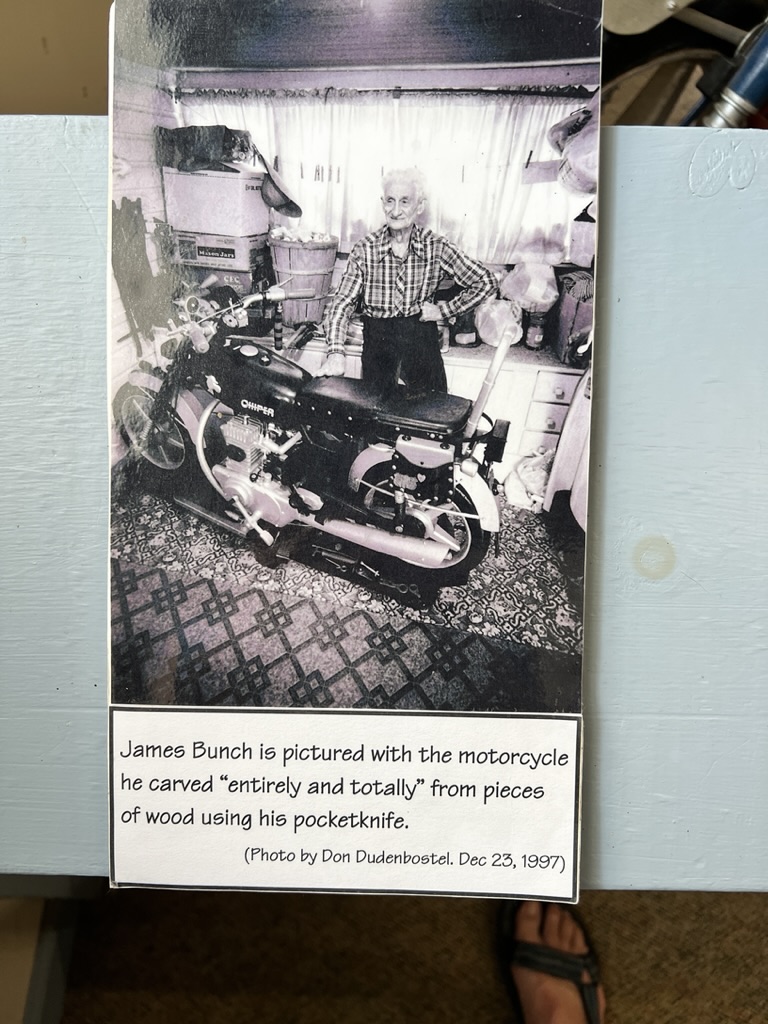 One of our side trips was the Museum of Appalachia. This is a replica of a small town that could have been situated in the Appalachian Mountains. Several cabins of historic nature have been relocated to this park along with a hall of memories and the history of the music of the area. We saw 2 woodchucks and we had to ask what they were as we had never seen a woodchuck. How much wood can a woodchuck chuck if a woodchuck could chuck wood? I still don’t know. This one was munching on a nut that had fallen out of the tree. Teri had to say hi to the miniature horses and donkeys before we left. There was a motorcycle on display in one of the buildings. Imagine my surprise as I read that it had been carved out of wood with a pocket knife. Amazing.