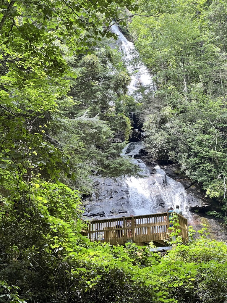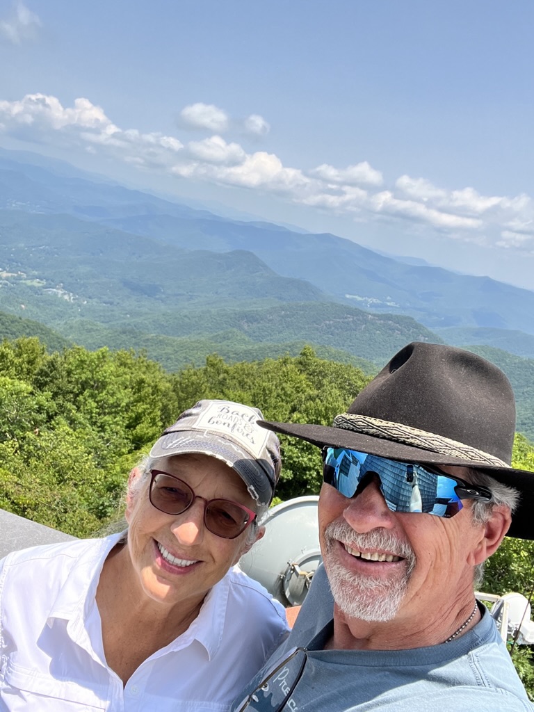 We took several day trips while in the area as well as some fishing trips. Anna Ruby Falls is an amazing site. There is a 1/2 mile hike on paved trail to the falls, with some steep inclines but the views are worth the effort. Watching the water cascading off the cliffs was spell binding. There are actually 2 rivers that make up the falls and converge into a single river. On one of our day trips we kept seeing signs for Brasstown Bald. We had no idea what this was. As we approached the turnoff, we made a hasty decision to check it out. Hang on as we made a quick turn. As we drove we started climbing a steep grade and above us, on the top of the mountain, we could see a large round structure. We found out this is the top of a mountain in which you can see 4 states (GA, TN, NC, SC). The top of the mountain is the highest point in Georgia at just under 4800 ft. The round structure is a fire watch tower. We did not have the opportunity to climb up into the tower.