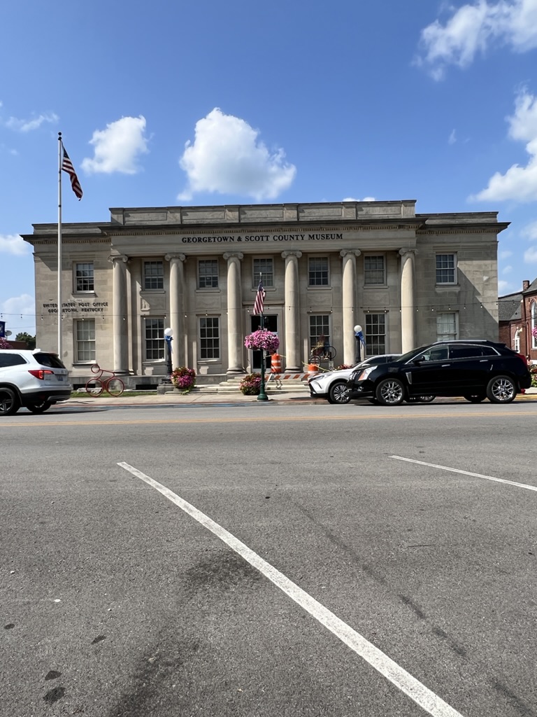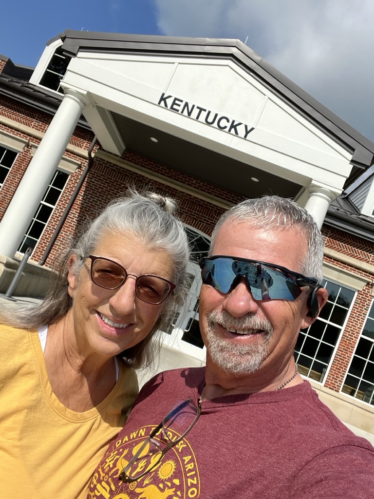 After arriving in the Georgetown, KY area we took a walk through the historic downtown area. Our initial reaction was not a positive one. We stood on the corner of an uncontrolled intersection with a marked crosswalk. The traffic was steady but not one driver acknowledged we were waiting to cross and it took 5 minutes before we could find a break in traffic. This was not the level of courtesy we had experienced further south. The weather was hot and humid with 86 degree temps 65% humidity that the weather app said felt like 91. There were few trees compared to the Knoxville area. We popped into a small gift shop and while Teri walked through the shop, the young man behind the counter started a polite conversation. As he asked about our travels he commented that he doesn’t drive yet so he couldn’t fully understand some of the nuances of our trip. For being such a young man, I would guess 15ish, he asked very intelligent questions and provided us with some suggestions as to sites to see. It was very refreshing. There was a small orchard store near the campground that we stopped at. It was staffed by 2 middle-aged men. The first was sitting on the porch and didn’t even acknowledge our presence as we approached. As we walked through the store, the second was behind the counter and didn’t say a word until I said hi. We were quite surprised by this as we had experienced a very different level of friendliness in GA and TN.
