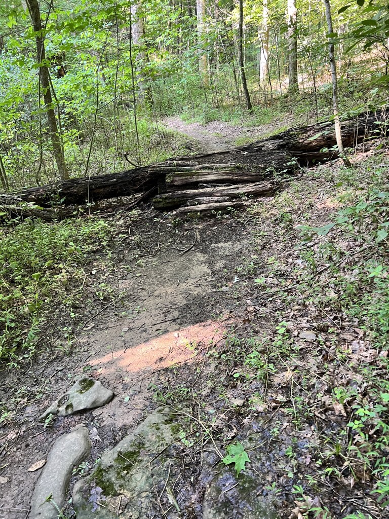 The biking and hiking in this area was disappointing. The roads are very narrow without any shoulder so I felt very uncomfortable just thinking about riding on the road. Teri wouldn’t even consider walking along the road. I did find 1 mountain biking area. I made a mistake at the entrance and found myself on an equestrian trail. About 15 minutes into the ride I was disgusted. The trail was steep, muddy and marked up by horse hoofs. I called Teri and said I quit because the trails are so unmaintained and damaged it wasn’t worth the effort. As I took a side trail to get out of the park, I found a trail that criss-crossed the one I was on. That looked more like a mtb trail. I took a left and continued riding. I’m glad I did. I called Teri and said, I had been on the wrong trail but now I had found the right one. It made all the difference. This trail was well built and maintained and was a lot of fun.