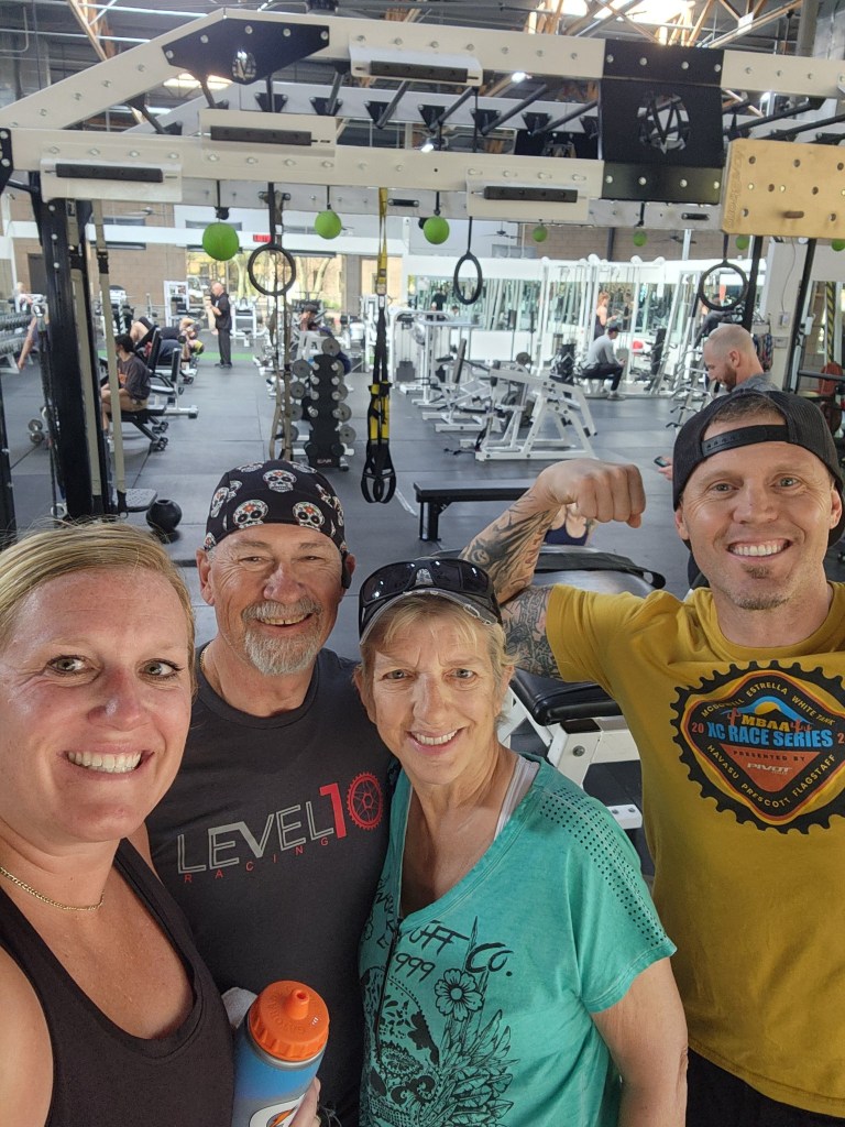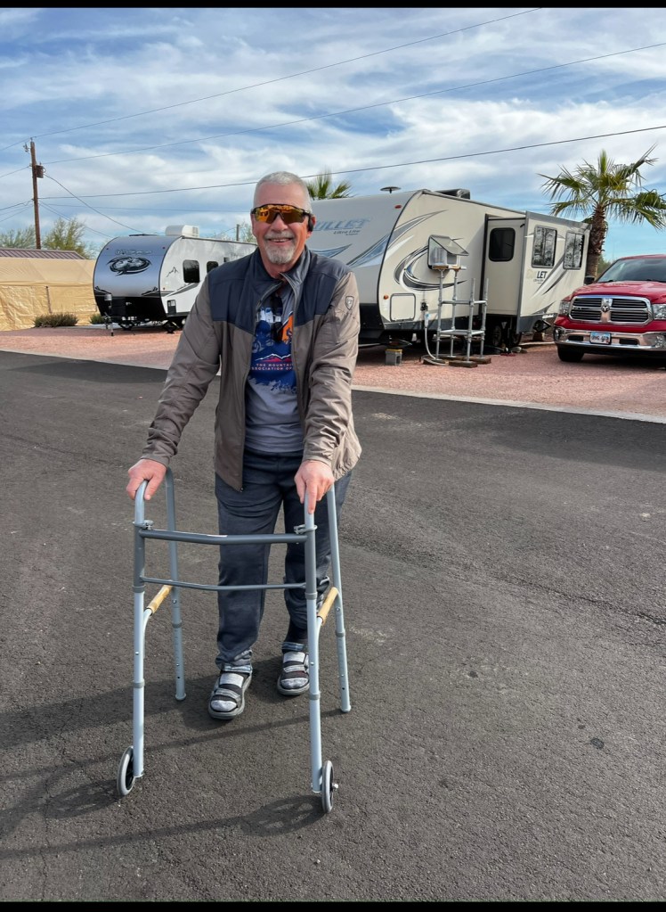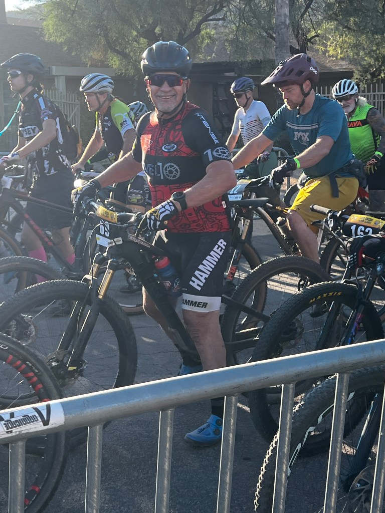 As my surgery date approached, I was also heavy into training for the first race of 2024, The McDowell Meltdown organized by MBAA, Mountain Bike Association of Arizona. As race day approached I had the best fitness I had had in a long time. I was ready. We met with the surgeon 2 days prior to the race and 4 days from surgery. Teri told the surgeon of my plans to race. He looked at me like I was crazy. You all know I am. He said, “I won’t tell you not to race, however, if I see any cuts, scrapes or abrasions when you are getting prepped, I will cancel the surgery”. As we walked out of the doctor’s office I was heartbroken. This was going to be the only race I could participate in this spring and had been looking forward to it. I knew what I was going to do and it hurt. The surgery meant more to me than the race. The day of surgery arrived. We were at the hospital at 5am. The Dr visited and asked me which leg we were going to operate on. At first it scared me, he should know better than me, but then I realized it was probably just a confirmation. He wrote his initials on the right hip. At 9am I received a spinal injection and I don’t remember anything else until 1230pm when I woke up in recovery. I was wheeled to my hospital room and at 4pm the therapist was there and took me for a short walk. I spent the night in the hospital and the next morning the therapist was there at 8am to take me for another walk. We also climbed some stairs. Upon returning to my room, she said I was cleared to go home. We saw our good friend Joe wandering the hospital hallway looking for me. He stopped in and visited for a short time. I returned home that afternoon. For the next 2 weeks, I walked around the park. Yes, I overdid it at least one day. But I got stronger every day. At the 2 week Dr follow up visit I was cleared to start doing upper body workouts and no longer needed the walker. At the 6 week visit, Doc said I was fully cleared to start normal activities. Yippee! The act of walking without limping or discomfort is amazing. I am now in the process of rebuilding my strength and fitness.