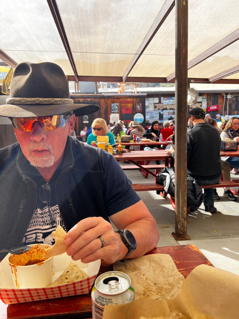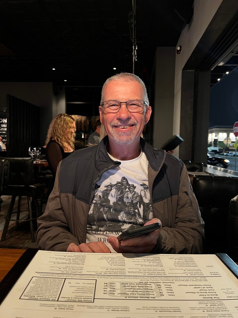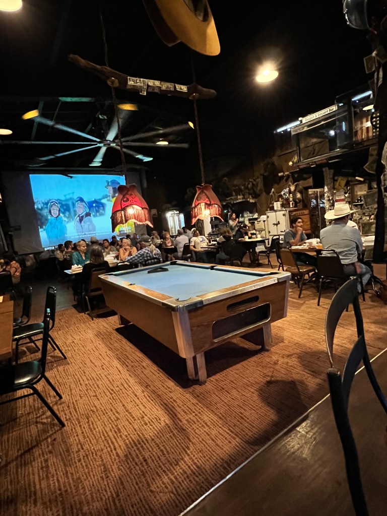 One night we all went to the Hitching Post Saloon. The food was excellent as was the service. Once it got dark, the bull/steer riding started. At the back of the building is a large ring with some grandstand seating along with ground floor seating. In the ring, kids (they are all younger than me) had their hand at riding a bull or a steer. The youngest was a 10 year old boy who tried his hand at riding a steer. Most of the contestants appeared to be under 25. It was great entertainment. The funniest was the mutton busting. This is where kids around 5-8 years old tried to ride a sheep. The best ride was from a 7 year old girl. She wrapped her arms around the fluffy sheep’s neck and held on until the sheep fell face forward to the ground. The young lady also face planted. She jumped up, took off her helmet and jumped up and down with a huge smile on her face. It was great to see the western heritage is still strong.