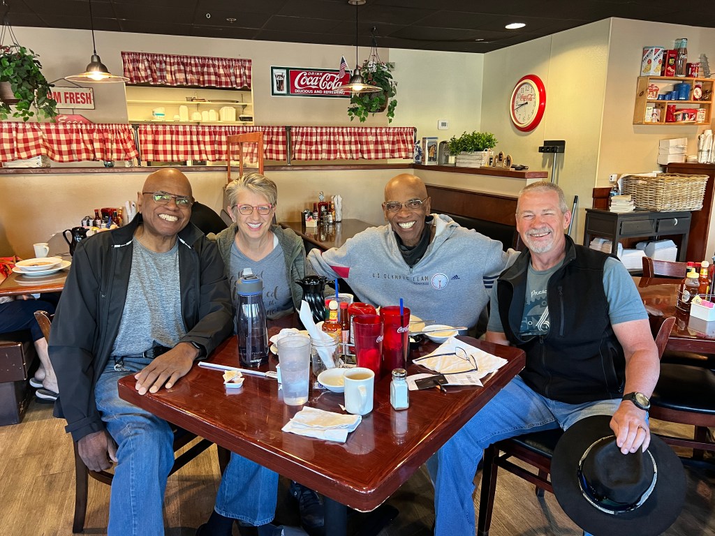 Life in the park isn’t so bad either. There are plenty of personalities to keep life interesting as well as activities. Bingo, water aerobics, poker, cornhole, pickleball, birthday celebrations and did I mention fishing and hiking?! We continue to meet with Joe once a week for breakfast. One morning he provided us with another view into his past by brining his 1964 Olympic Gold Medal and a photo of the team that won this medal.