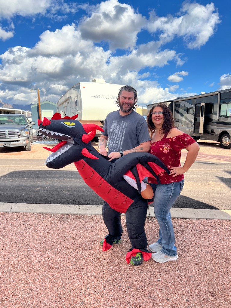 Halloween night we sat outside the motorhome in the dark playing halloween music with lots of candy. We didn’t have any trick-or-treaters. The candy was donated to the RV park office. Much of our time was spent training, hiking, purging more things from the motorhome we thought we would need- but didn’t and waited for our friends from Iowa to arrive.