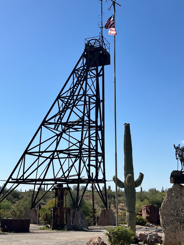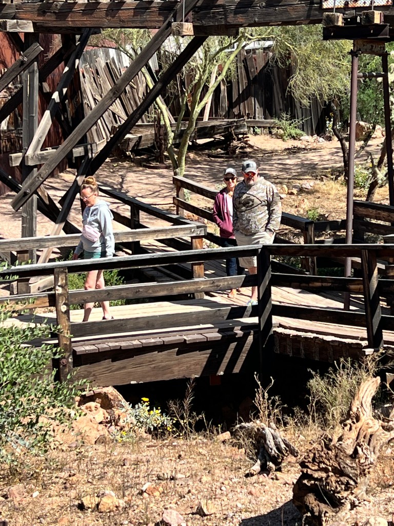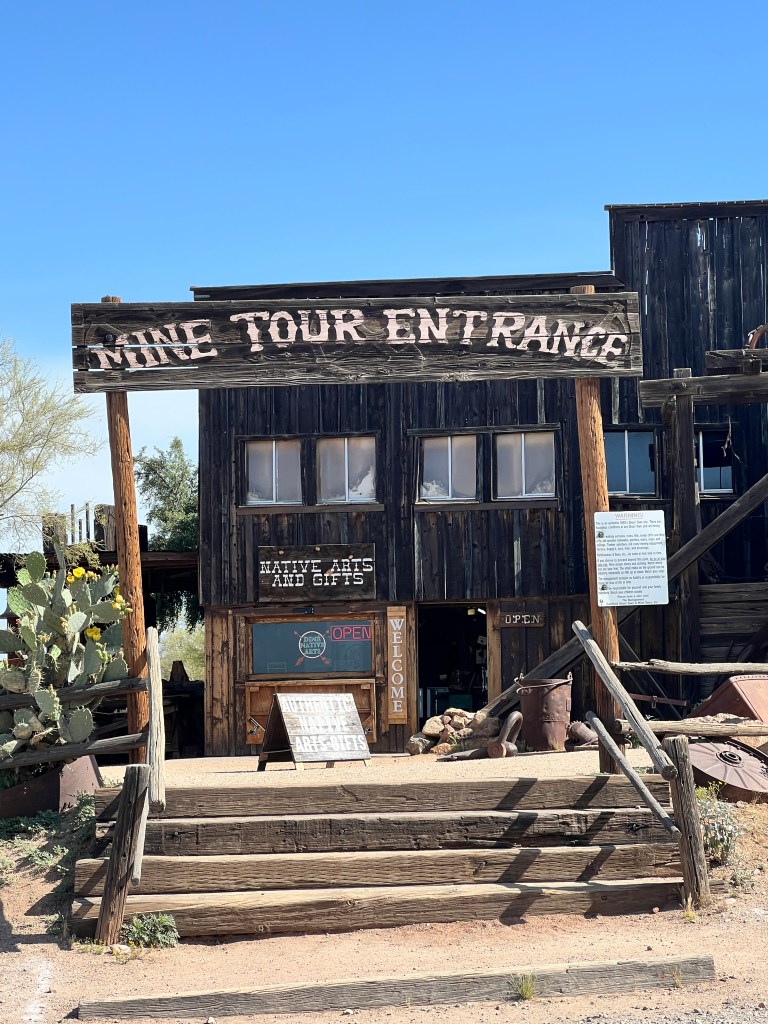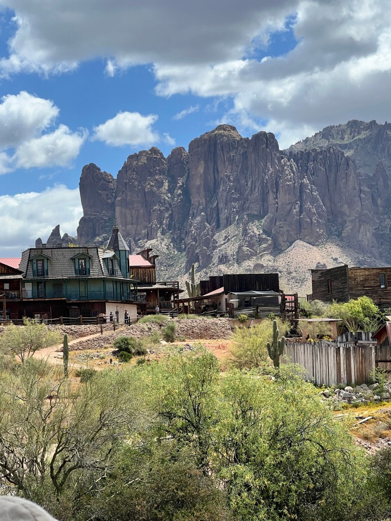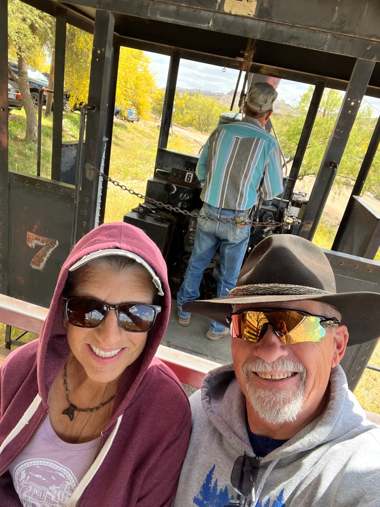 Have you been to the Goldfield Station aka Goldfield Ghost Town? It’s situated on the Apache Trail outside Apache Junction and is a replica of the historic Goldfield mining town. Take a walk along the boardwalk and see if you can hear the spurs jingling or the miners whooping it up. In any case, it is filled with history. Callie, Brett, Teri and I jumped on the steam locomotive for a perimeter trip of the town and then we walked into a gun fight in the streets.
