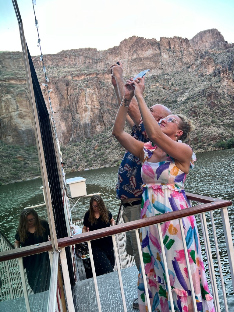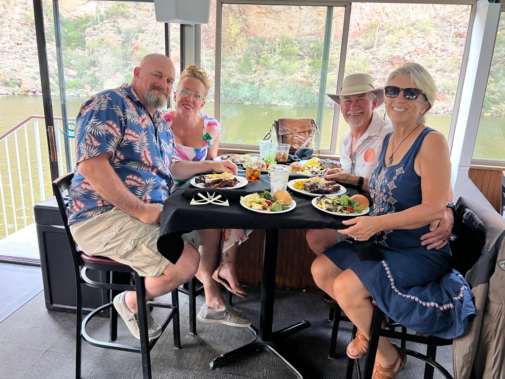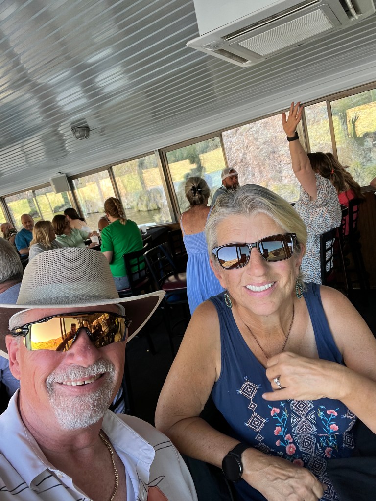 Our last outing before leaving the valley was a trip to Tortilla Flats and then a dinner cruise on the Dolly Steamboat at Canyon Lake with Callie and Brett. A nice, calm, couple hour cruise on Canyon Lake with some wonderful company and a very tasty meal. The icing on the cake, so to speak, was seeing the big horn sheep coming down off the canyon wall to the lake to drink.