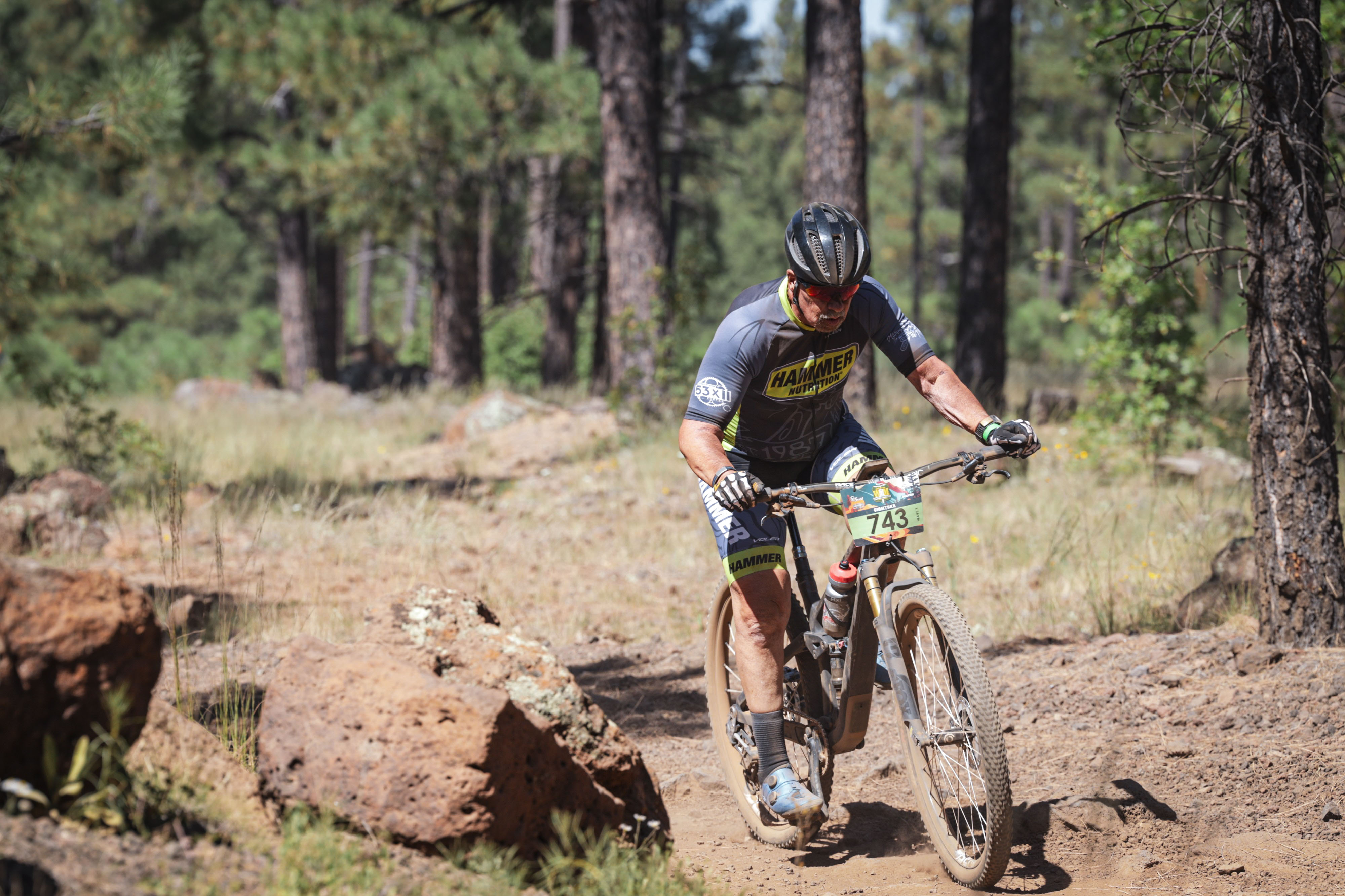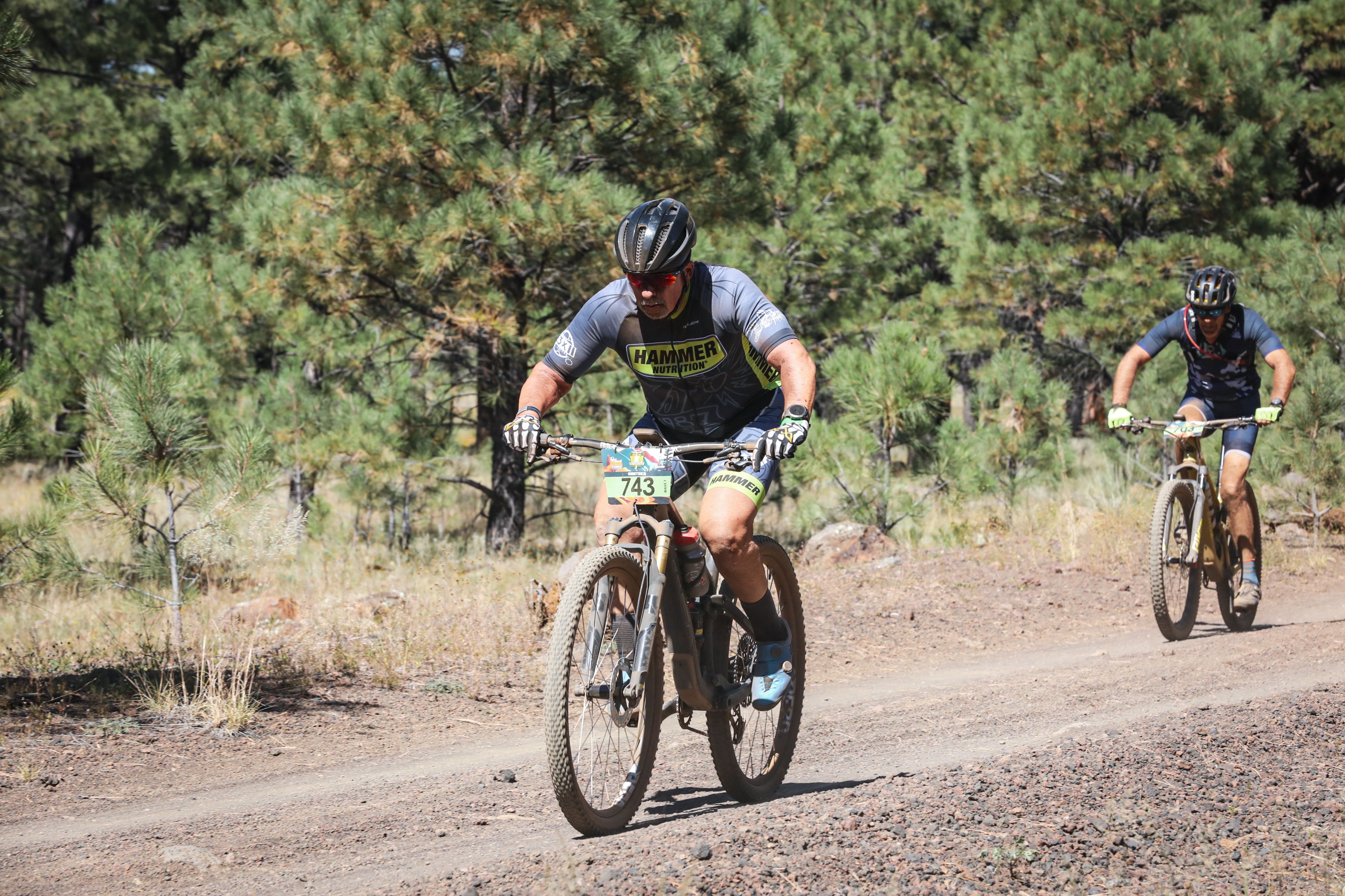As for the race, this was a 35 mile race at 7,000 ft elevation. I’m used to training at less than 2,000 ft elevation. There had been no rain in the area for quite a while so the forest was dry and dusty. At the starters gun, several hundred of us started out fighting for position as we rode the paved portion before gliding onto the single track. There was an aid station setup at about the 1 hour mark. Teri, Brett and Callie had all planned to meet me there and supply me with some water bottles and fuel. I had received a text from Teri about 15 minutes prior to arriving at the aid station, but I didn’t stop to read it. As I rolled into the aid station, I didn’t see them where we had agreed they would meet me. I stopped to check the text. The text said the phone mapping wasn’t working and they couldn’t find the aid station. I tried to text, but didn’t have any signal. I knew I would pass through this aid station again in about an hour and a half and I would be able to top off my bottles at that time for the final hour of the race at the neutral support tent. On I went. As I rolled back into the aid station on the return trip, I stopped at the food tent and then heard someone calling my name. I looked up and saw the 3 of them there holding signs urging me on and they handed me my severely desired fuel bottles. I rolled into the finish line in 14th place out of 40 60+ age group racers. Another successful finish.