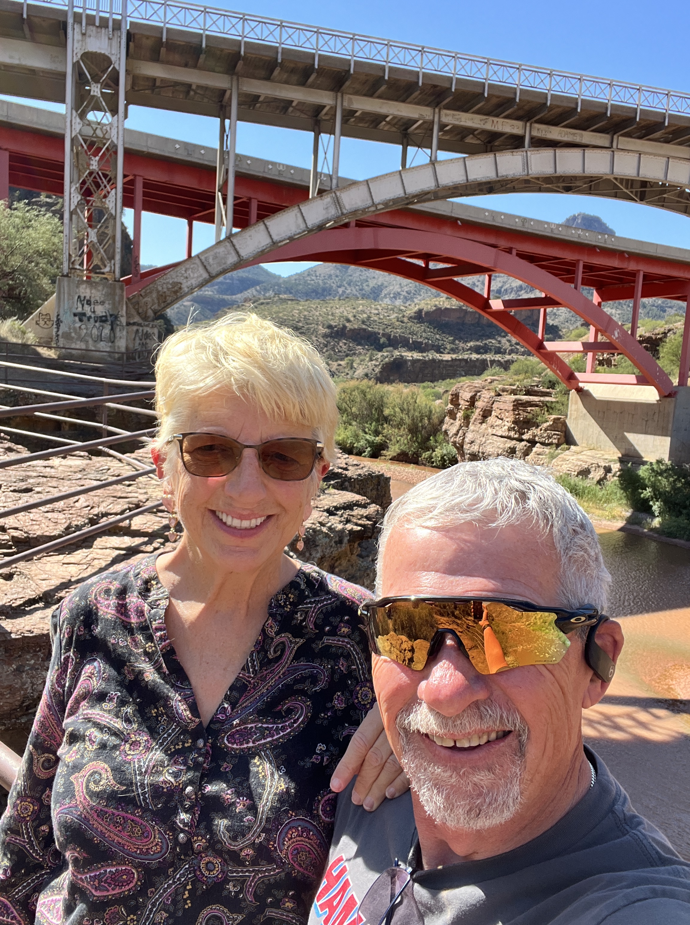 Then we started rolling into October with plans for the Tour of the White Mountains mountain bike race in Pinetop. As I was in training working my way toward race weight, I was very cognizant of my diet and couldn’t indulge in my favorite food- ice cream. During the week prior to the race we took a relaxation day and went to the spa for a massage and soak in the hot tub. A wonderful experience. On race weekend, we drove through the Salt River Canyon and stopped at the bottom to marvel at the sheer rock walls, the river bed, the impressive bridge and the winding road through the canyon. Brett and Callie joined us for the weekend so we had a great time.