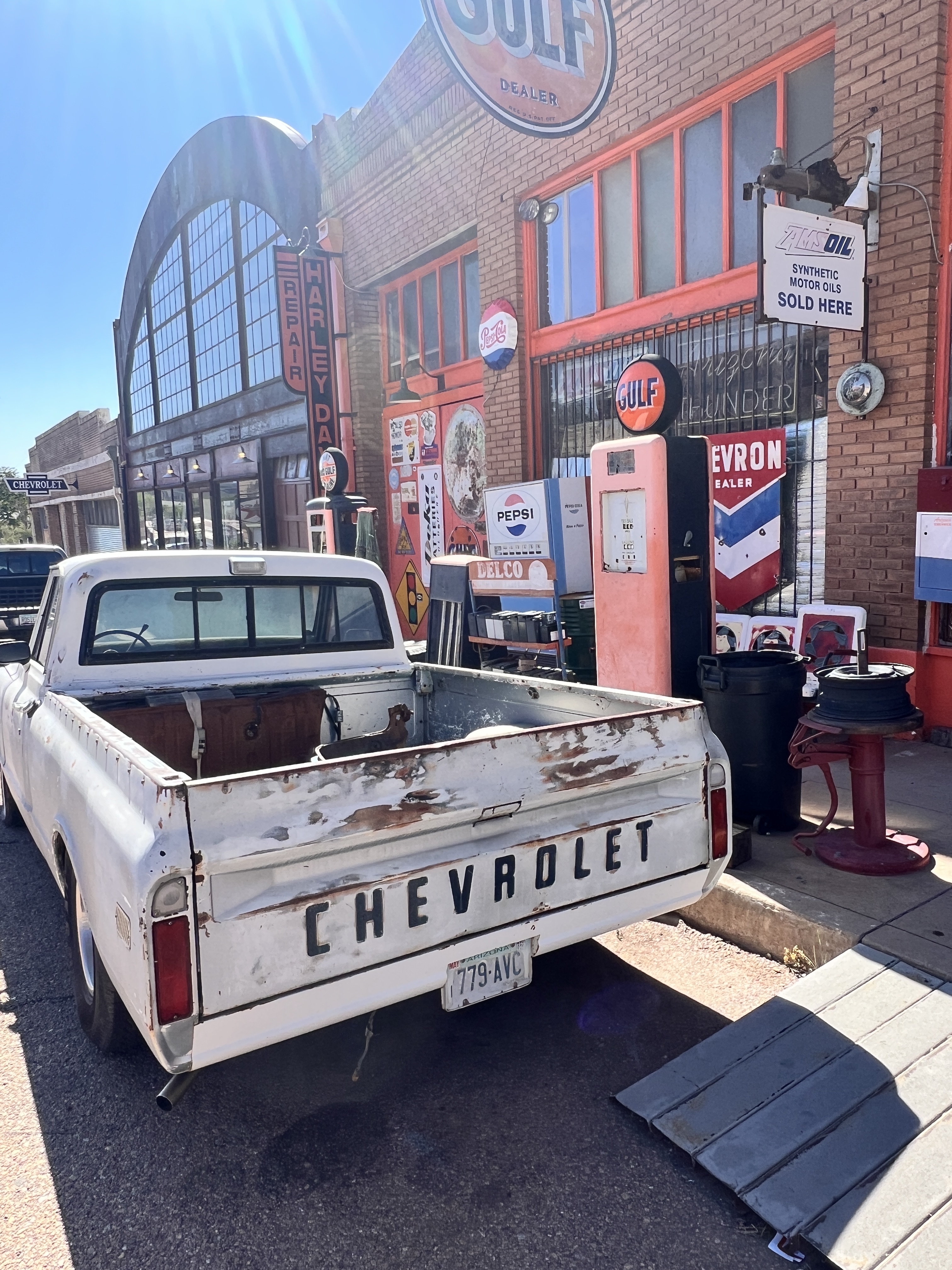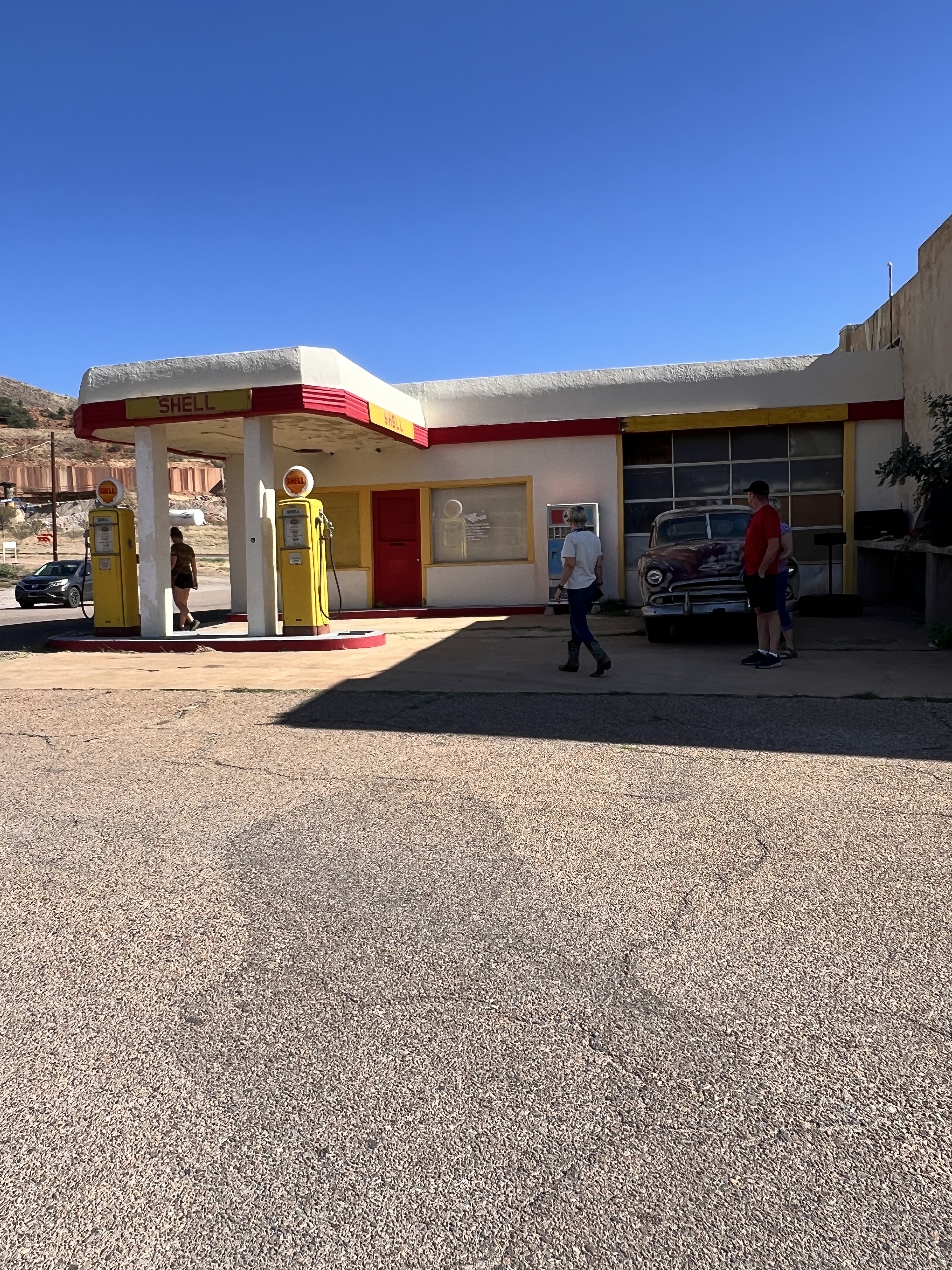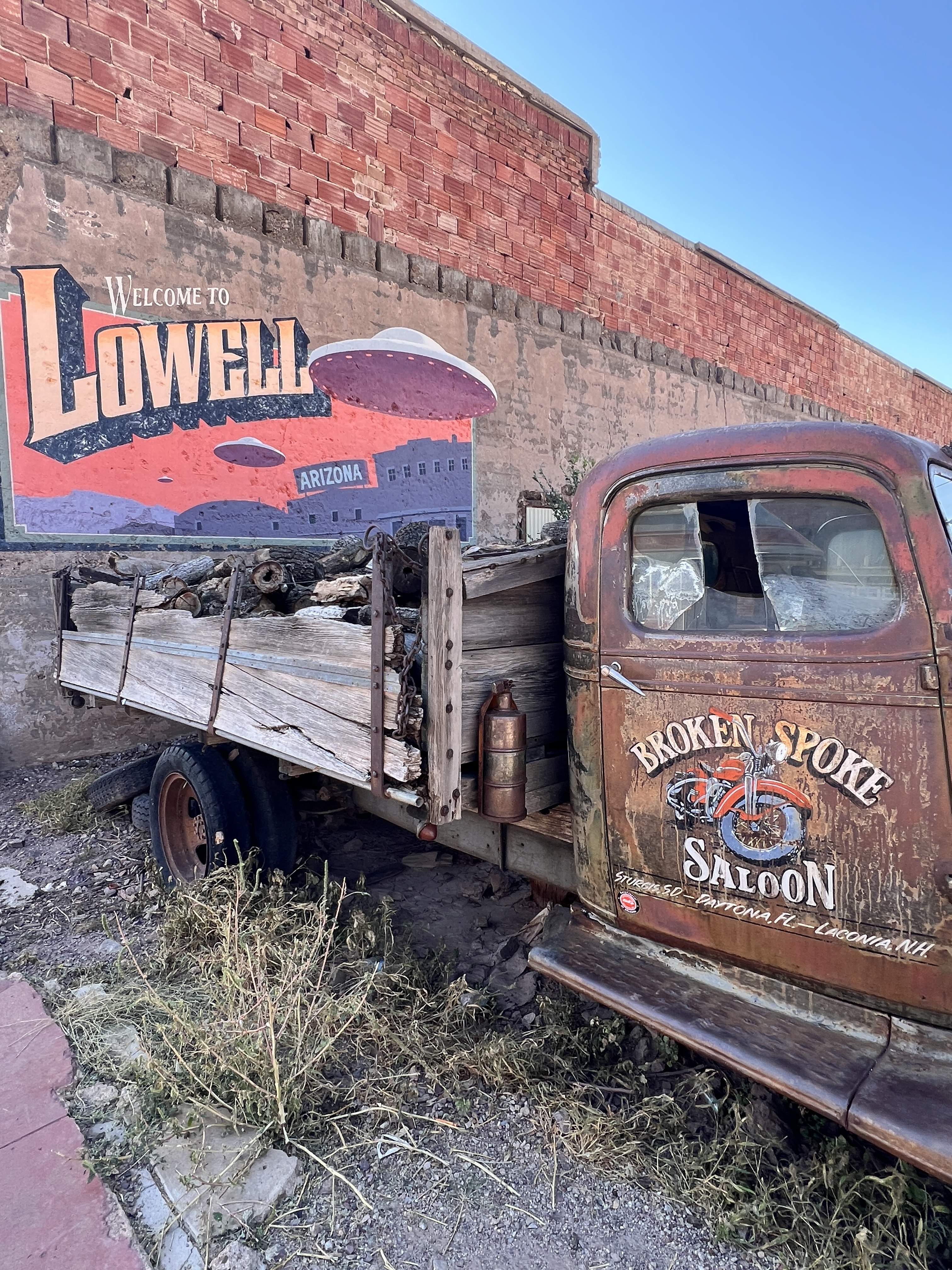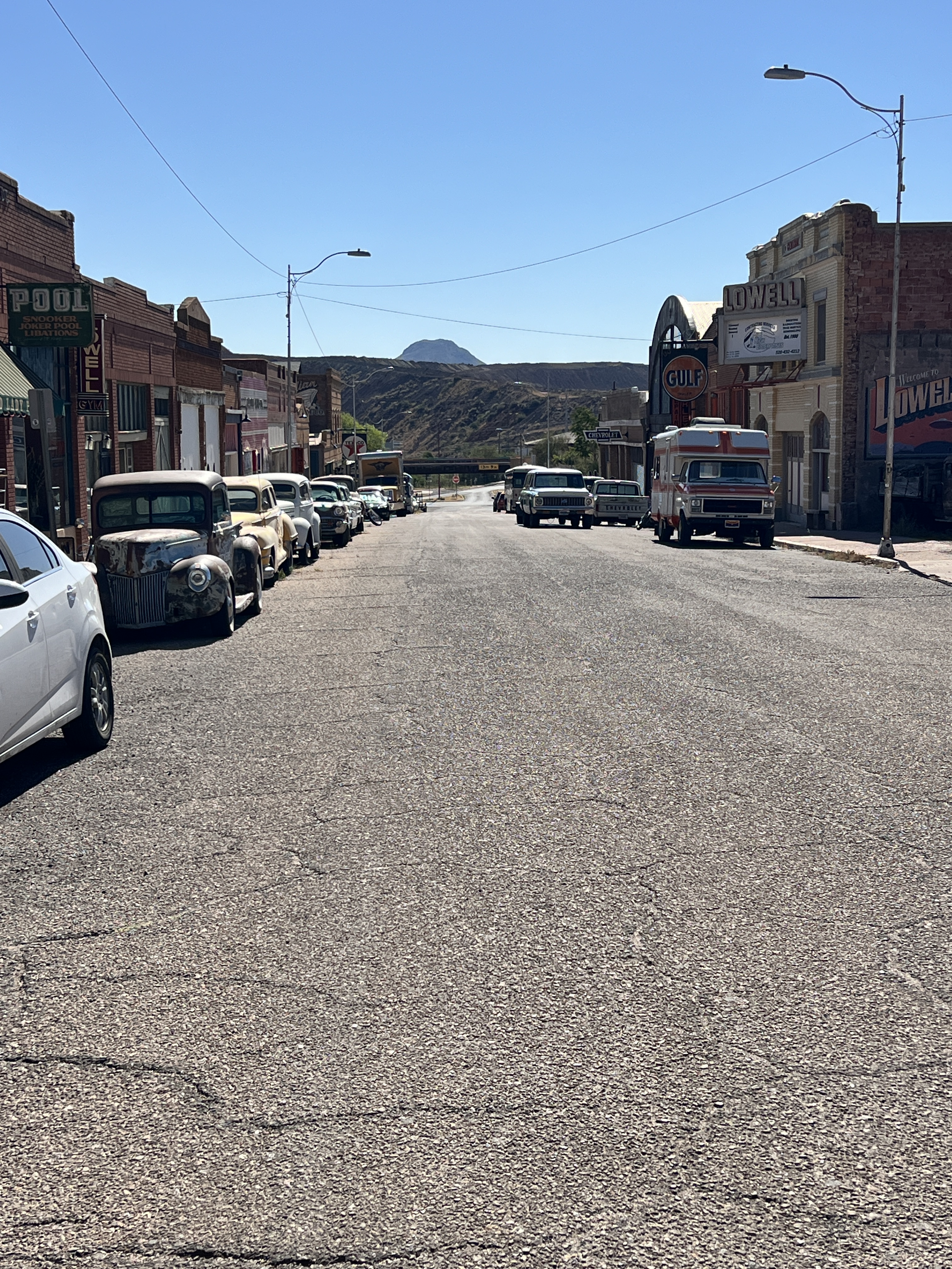We took one day to cruise down to Bisbee to check out the sights and walk the town. We had a wonderful lunch while we walked in and out of the various shops. The walk through memory lane through the community of Lowell is always interesting. This is a throwback to the 60’s with the various shops a gas station with the pumps right on the sidewalk. It is also on the edge of the large open pit copper mine that is no longer active. Many of the structures are still visible and I can only wonder what it was like when this was an active mining operation.