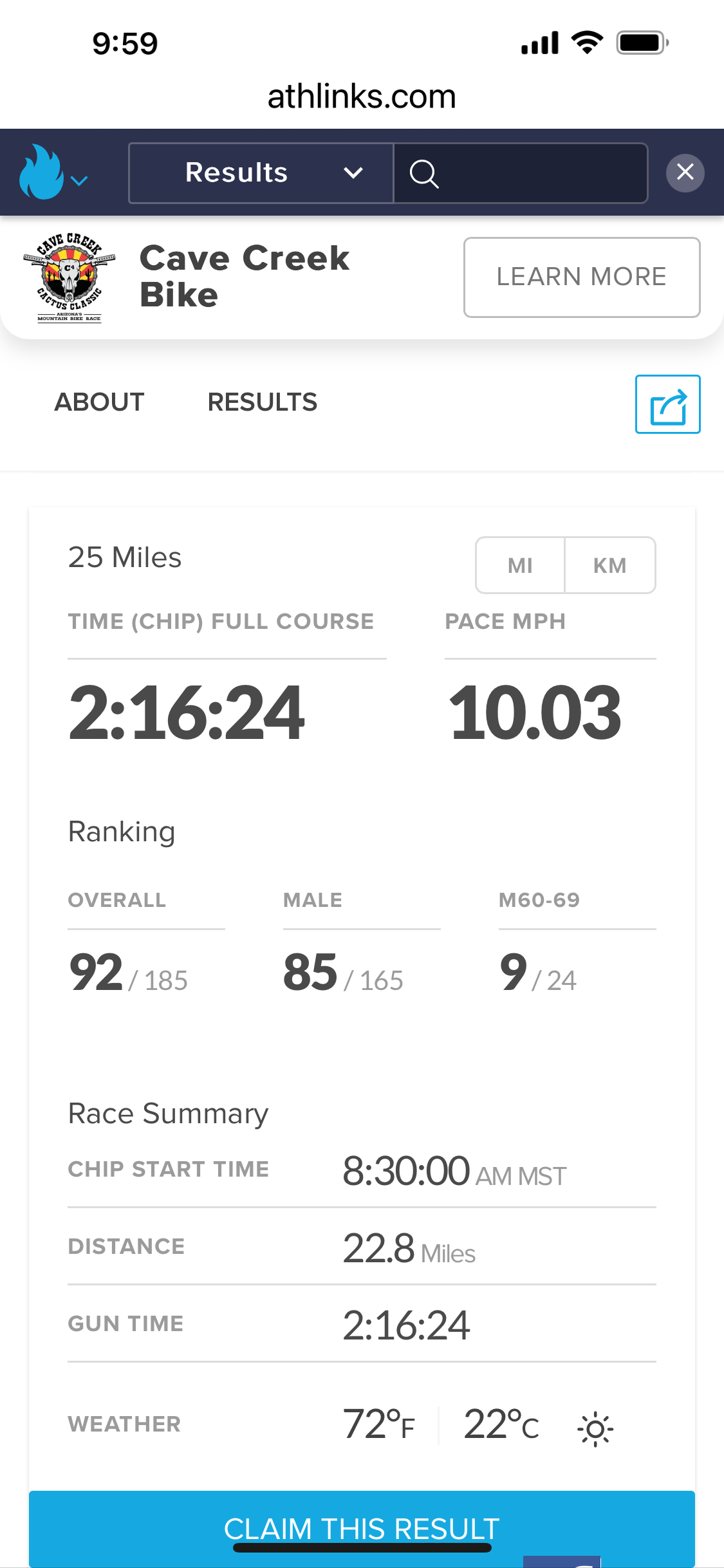 It was also time to start training with the first mountain bike race of the year being the Fire on the Rim in Pine/Strawberry. It was time to really test the new hip and my fitness. This was a 15 mile loop with a lot of climbing. I finished 8th of 29 in the 45+ age group. A finish I was very pleased with.