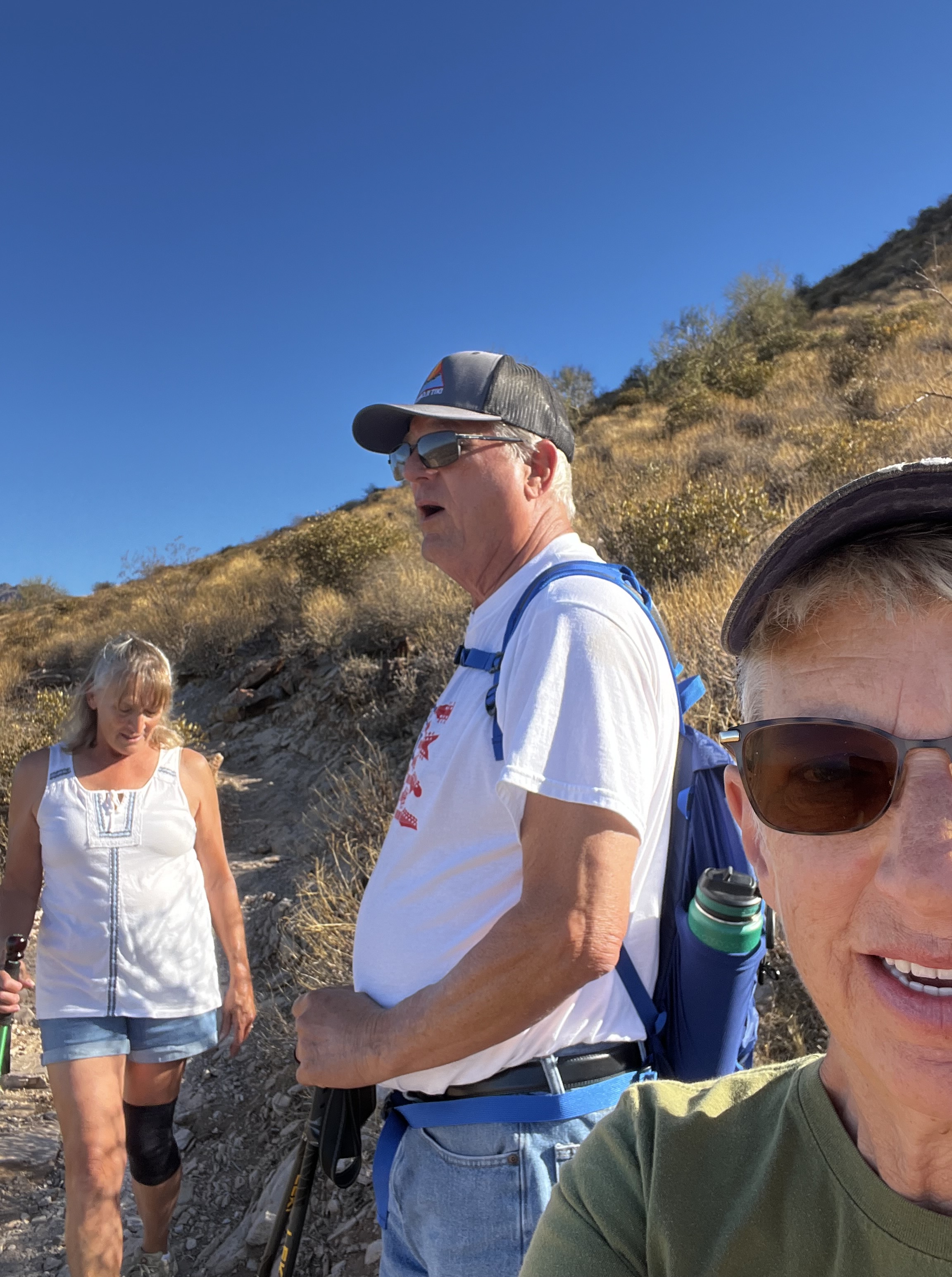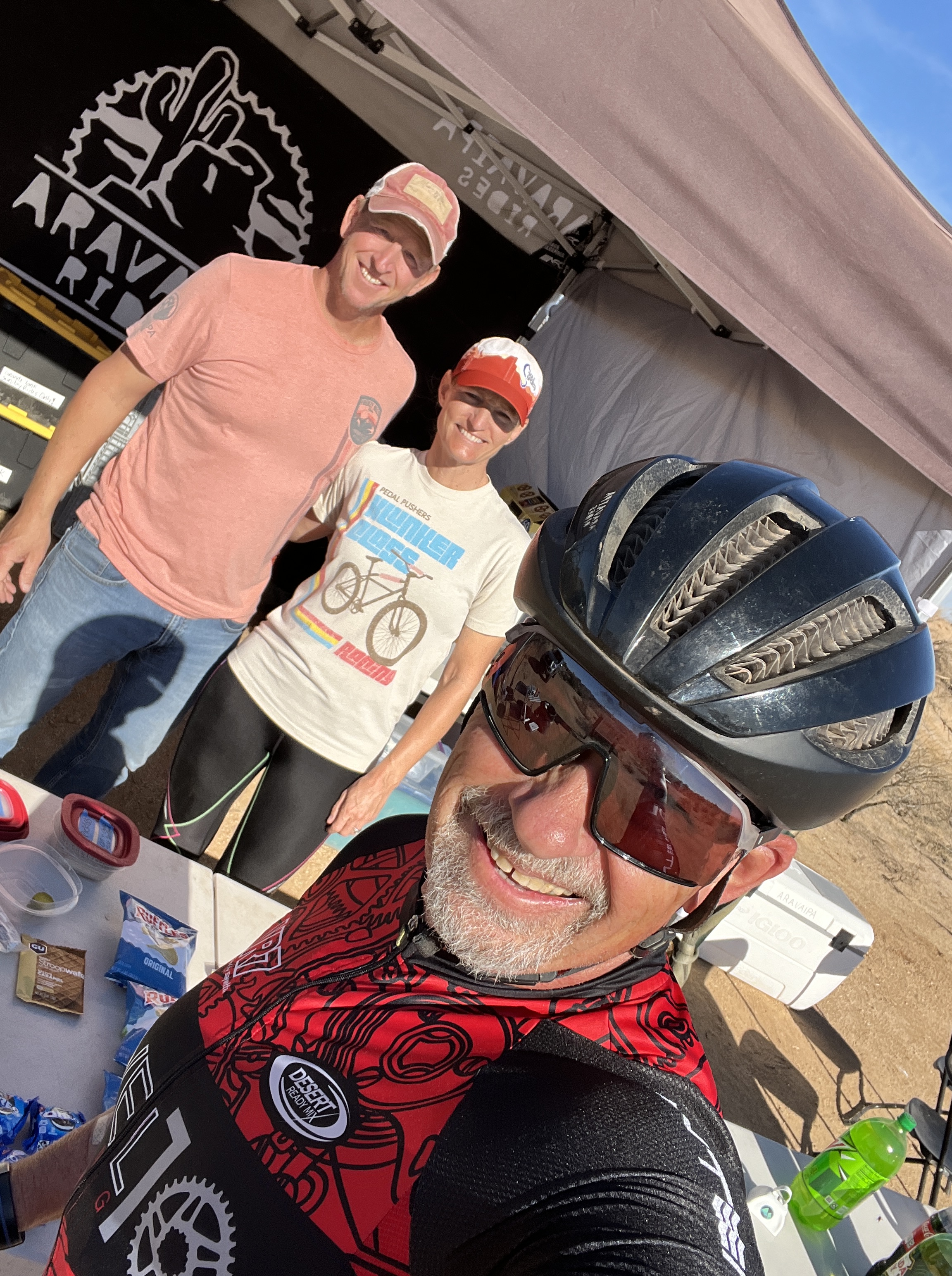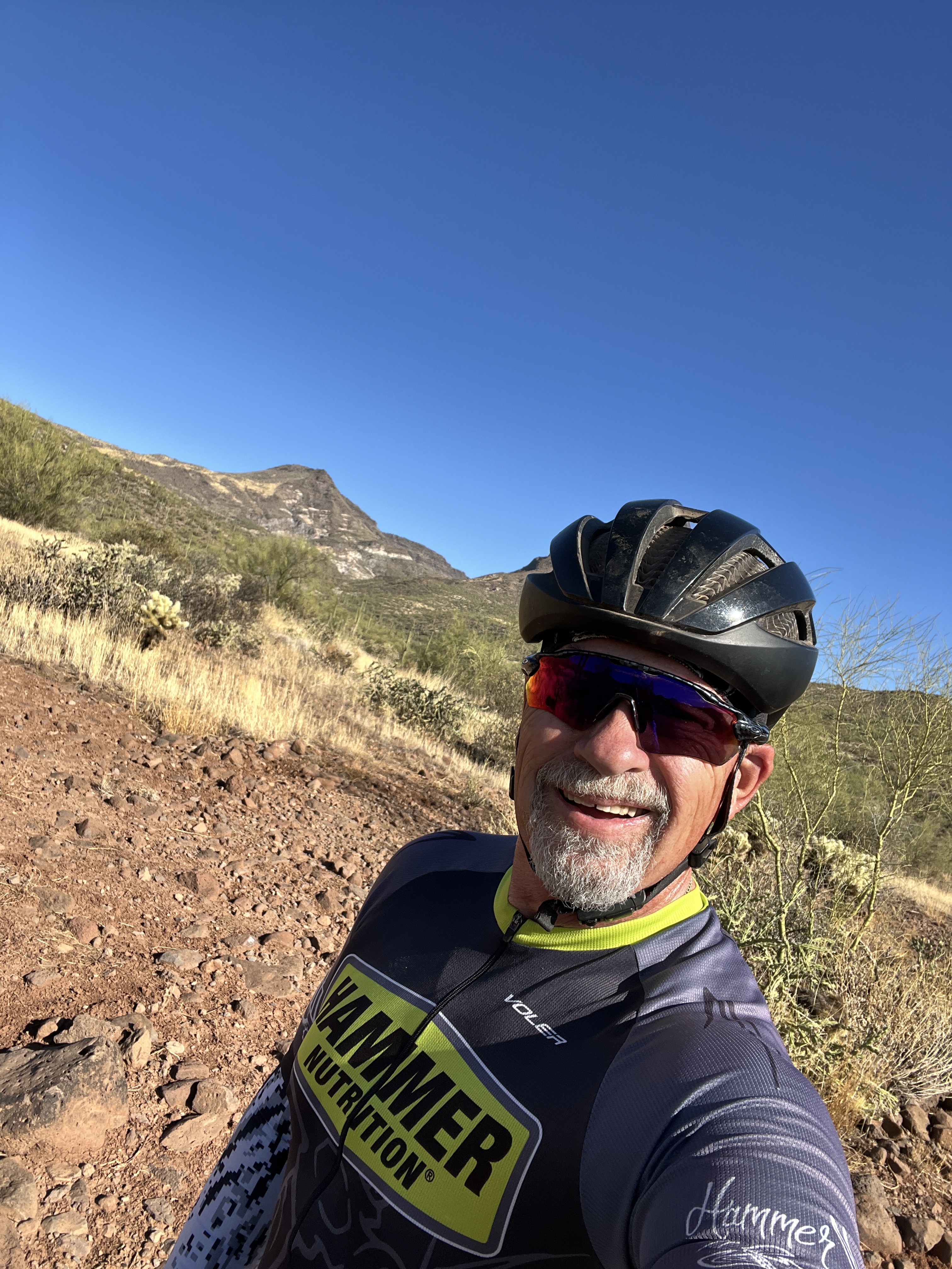 One of the fun things about mountain biking is the people I meet on the trails. On one particular bright sunny warm day while riding through Usery Mountain Park, a rider was approaching from the opposite direction. He stopped to allow me to ride through the narrow wash. As I climbed out of the wash I heard him call my name. As I looked at him, I didn’t recognize him. It didn’t help that he was wearing a full face helmet. Burt was a fellow retired officer from Chandler PD and we spent about 30 minutes on the side of the trail. On another ride I found Charlie and Cathie staffing an aid station for a running event. I know them from my days at the PD. They both have become very accomplished trail runners as well as marathoners.