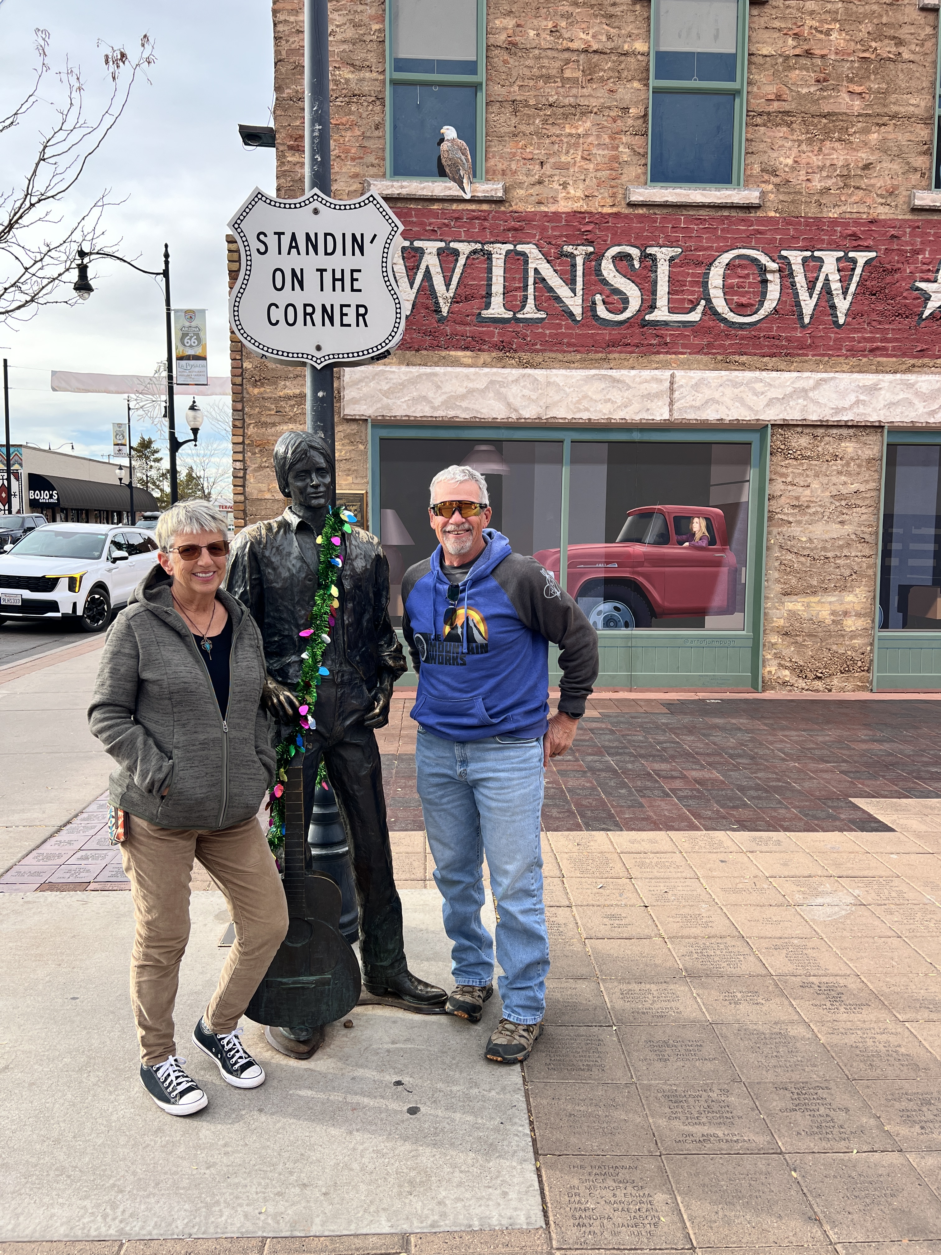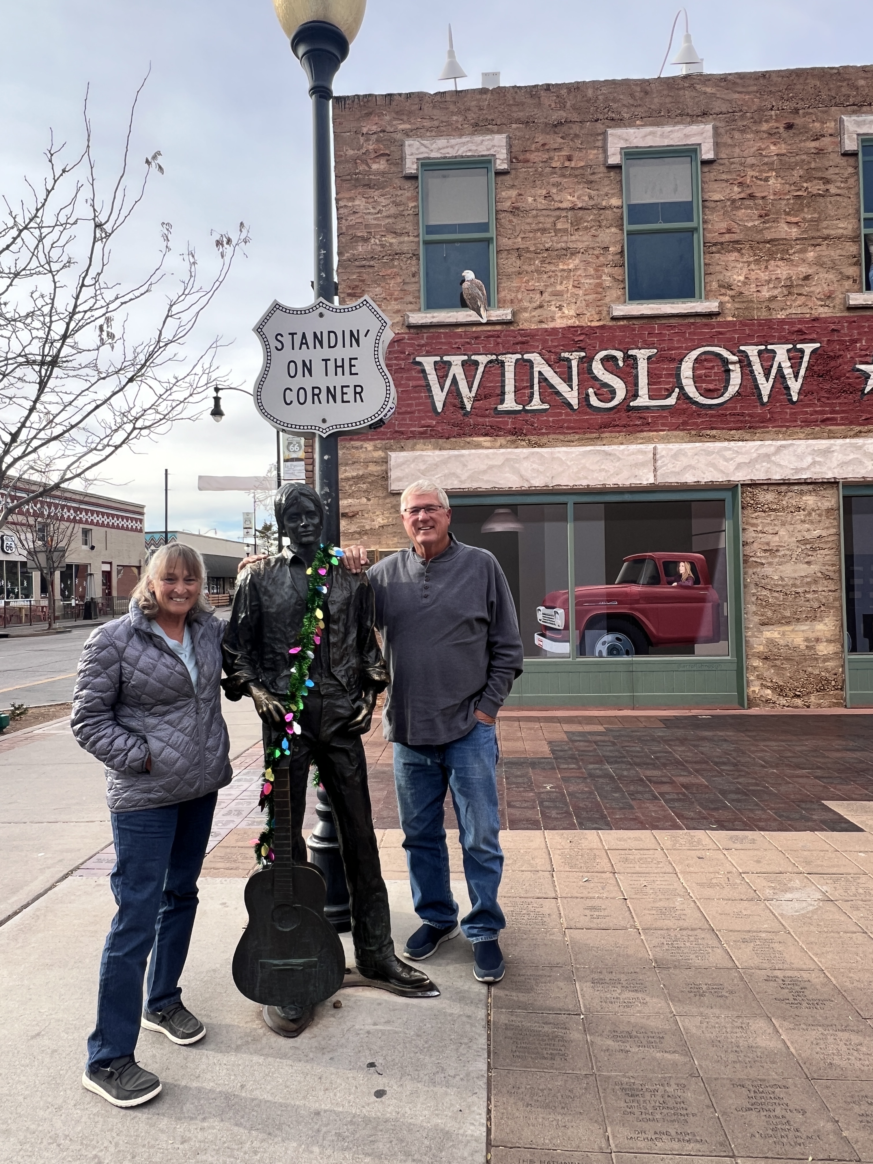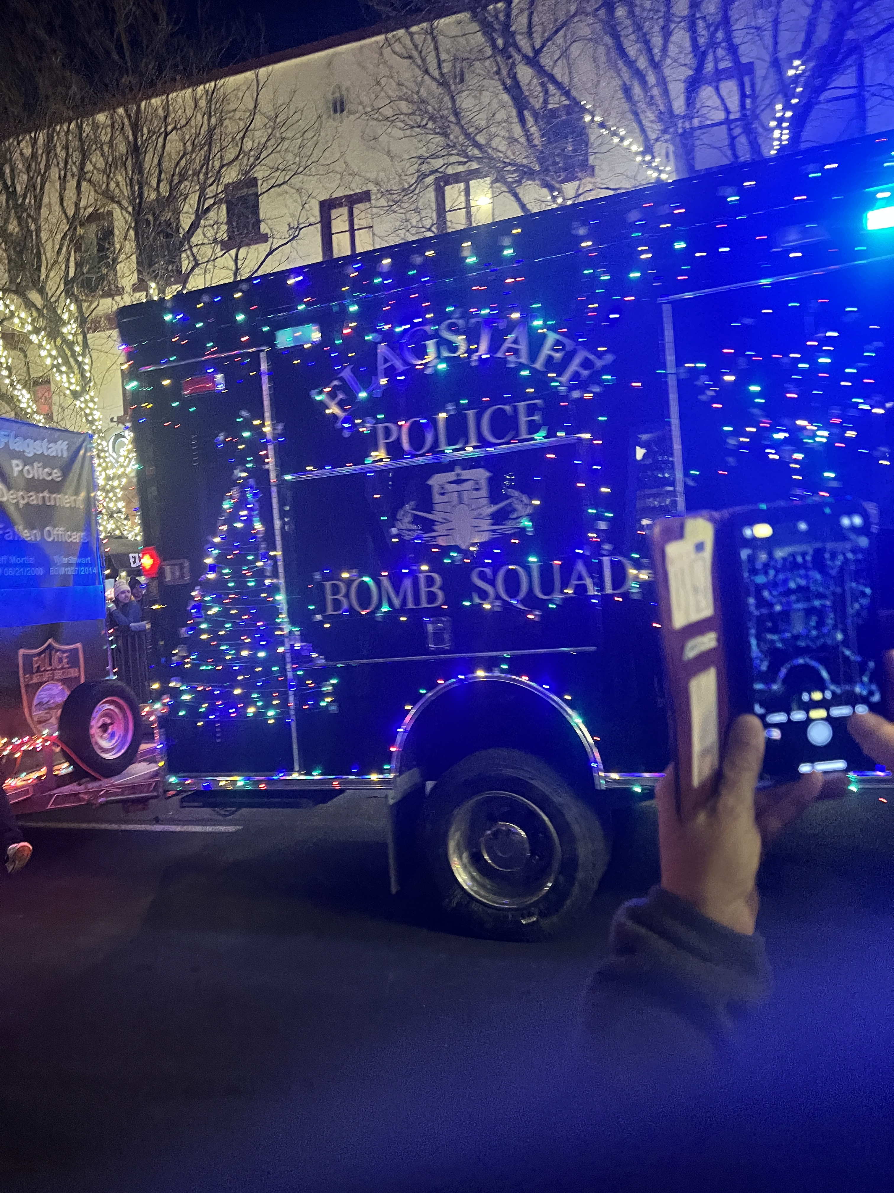 We also took an impromptu trip to Winslow and then Flagstaff to see the lights of downtown Flagstaff. While in Winslow, we stopped and stood on the corner next to the Flatbed Ford. I know you’re singing the song in your head now…. We also took a quick stop at the Apache Death Cave before arriving in Flagstaff. Upon our arrival, we found several of the downtown streets closed. We learned there was a parade of lights and of course we had to stay to watch.