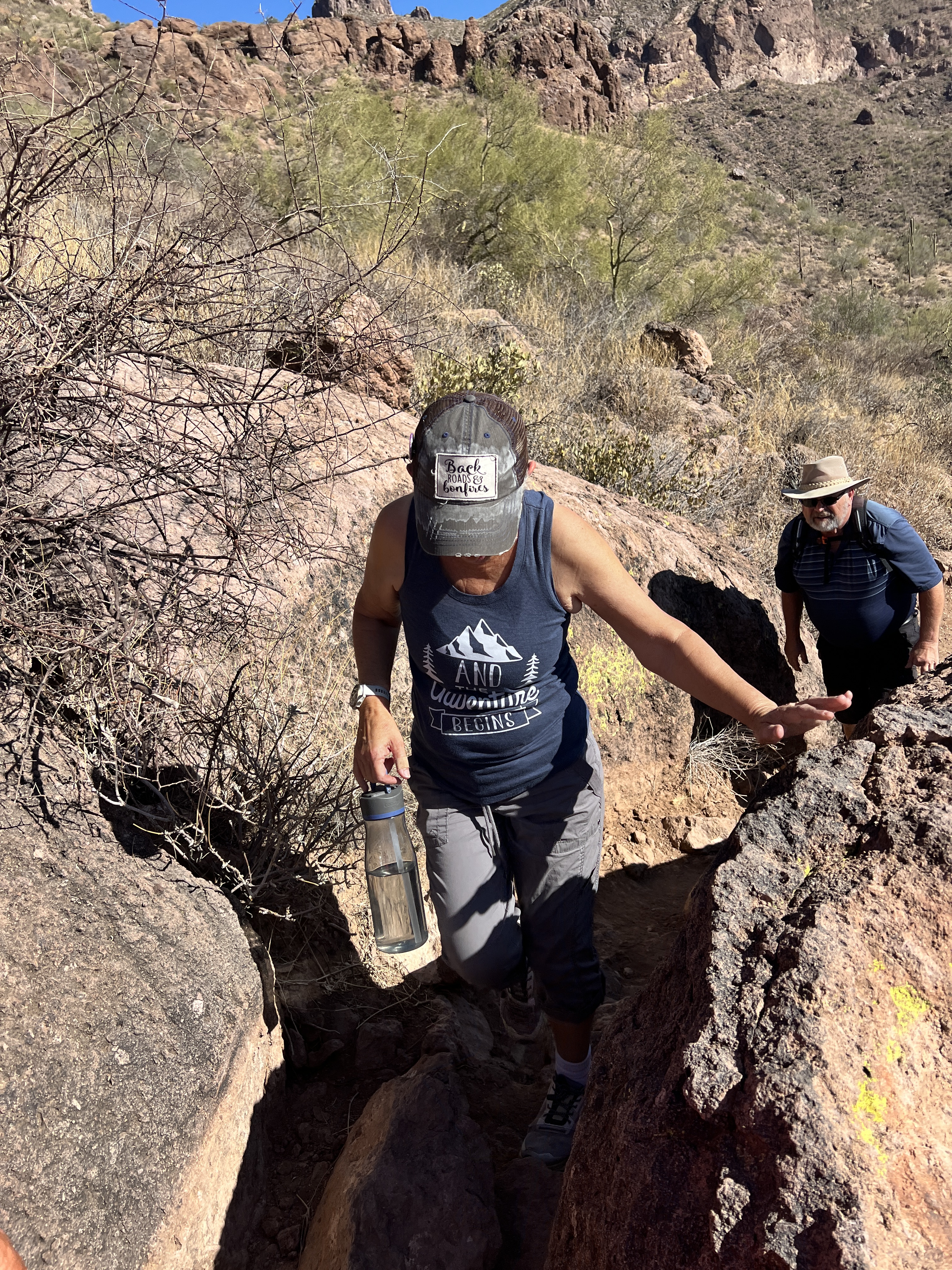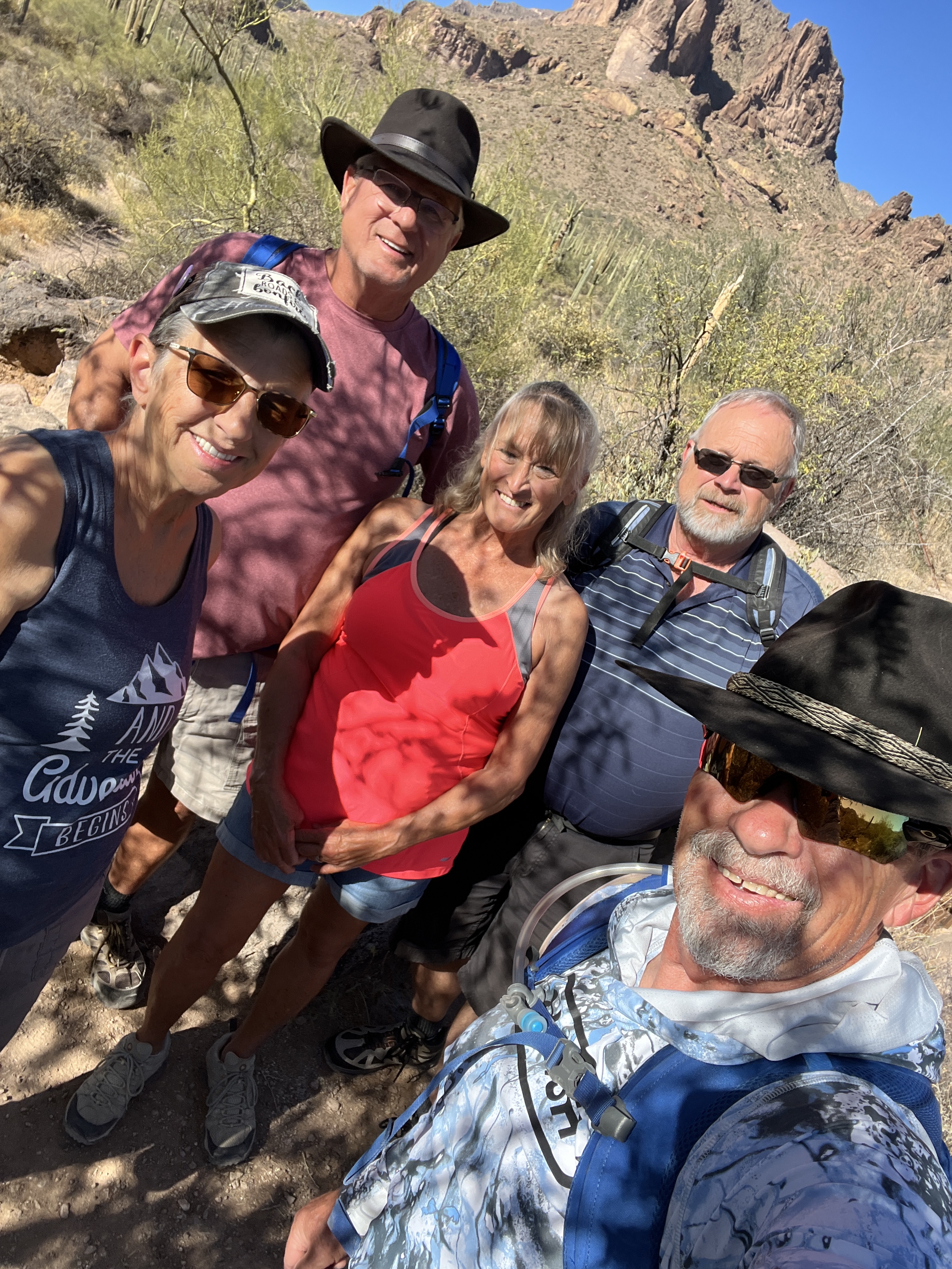 November is a month filled with birthdays and of course Thanksgiving. This year we were treated to the arrival of Craig and Sherie from Iowa to increase our band of crazies to 8. The whole crew took a day to visit Papago Park to hike to Hole in the Rock and visit Hunt’s Tomb. Teri, Craig and Sherie took time to hike various trails while I was busy on my training rides.