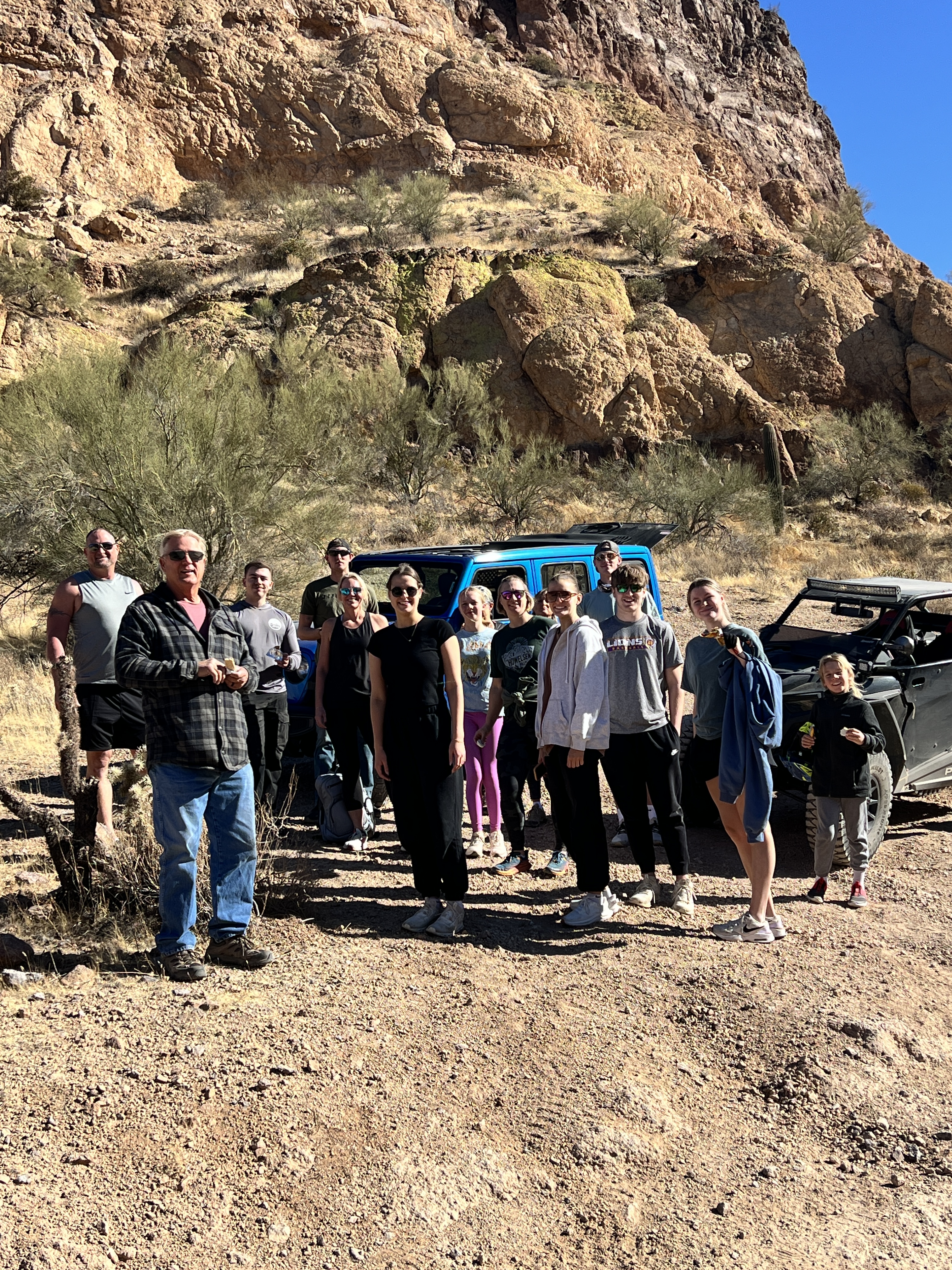Craig and Sherie had family, Tami and Adam and several grandkids who unfortunately I don’t remember their names, come to visit just after Christmas and they rented side by side cars and along with us and our Jeep we went for a 4 hour cruise into Bulldog Canyon. Another fun day!