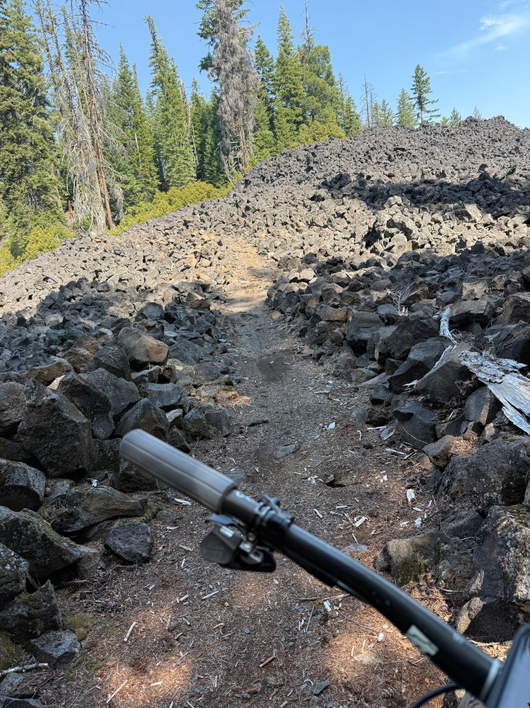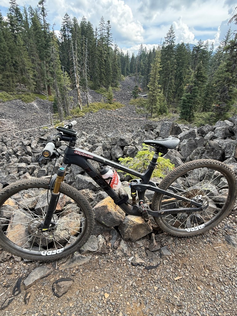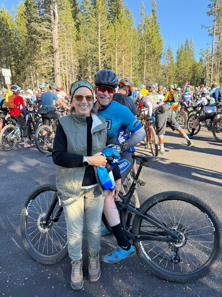 One weekend I drove up to Bend to pre ride the upcoming race course. The course would be 50 miles with over 5,000 ft of climbing. The pre ride took me 6 1/2 hours to complete. No crashes! I knew race day was going to be an epic one. Some truisms of riding/racing in Oregon. The trails go up, the trails go down. If it feels like it’s flat, it’s your imagination. There are trees and not all are standing. Some have fallen across the trail and have not been cleaned up yet. Others are so close together it can be difficult to get the handlebars between them cleanly. There will be roots, rocks, jumps and drops. Did I mention the climbing?