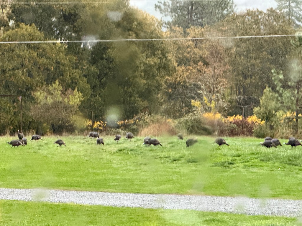 Meanwhile back at home Sarge is busy chasing snakes and hanging out. We had purchased come security cameras and while they were on the counter getting charged, Sarge activated one while peering down at it. We continue to have wildlife on the property with the deer being daily visitors. One night we captured a small group of raccoons walking through the pasture and a possum. During the day we listen to the birds chirping and the breeze blowing through the tree leaves. On another day we had to wait for the flock of turkeys to cross the road.
