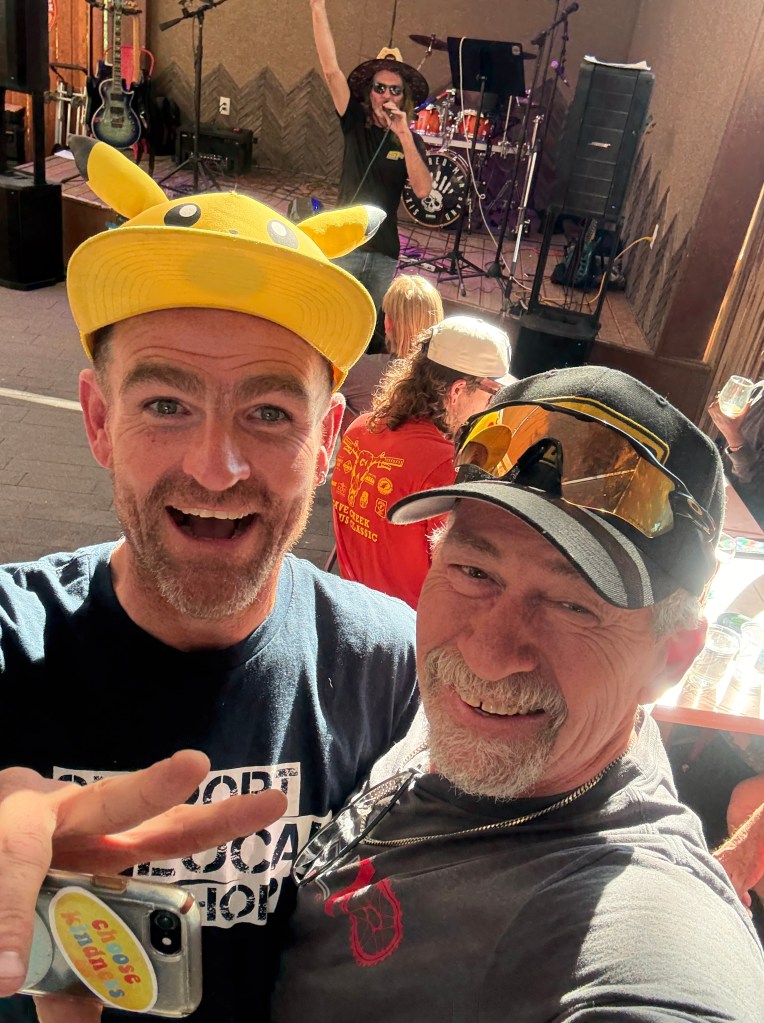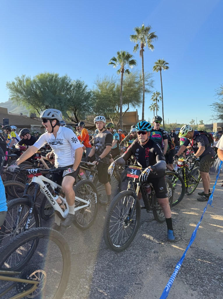 The 2nd weekend we were in Arizona was race weekend. The C4, Cave Creek Cactus Classic, has been a favorite race of mine. A 25 mile ride through the mountains north of Cave Creek. The weather was beautiful if not a bit hot as 21 of us old guys (and everyone else) headed out. I had 1 minor mishap in the first hour. My front tire bounced off a rock pushing me toward the mountain where there just happened to be a cholla cactus (also known as jumping cactus because if you get too close, it will jump onto you). I collected 3 balls of cactus on my right hand while I continued to ride not willing to let the riders behind me catch up. I shook my hand and 2 of the balls fell off. I took me 5 minutes to shake the 3rd one off but they left needles in my hand. The paramedics spent about 20 minutes pulling needles out of my hand after I crossed the finish line. I finished 8th and set a personal record on the course beating last years time. This was doubly satisfying as the leaders of the race had times that were 4 minutes slower than last year. This race is also an opportunity to brush elbows with friends we hadn’t seen in a year.