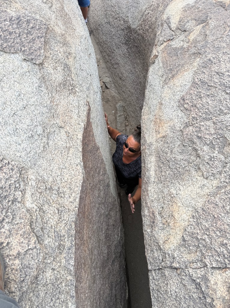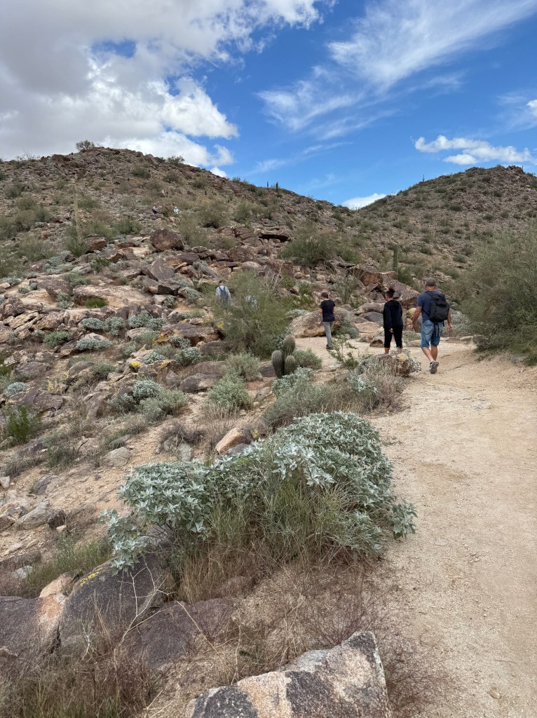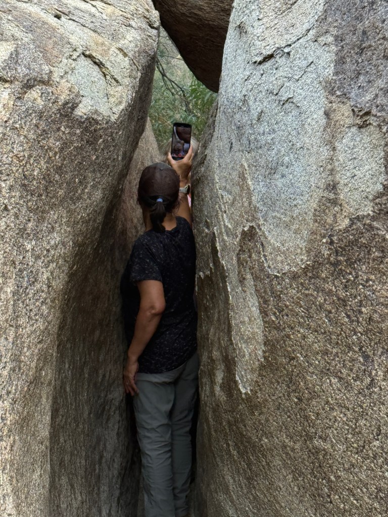 One Sunday morning, we attended church service with Craig, Sherie, Sue and Randy at their invitation. Afterward we headed to South Mountain Park and hiked Fat Man Pass. Whoever named this hike has a sick sense of humor. The highlight of the hike is the squeeze between 2 huge rock formations. If you’re too big, you won’t fit. I have always fit through the crack but not this time. Something had shifted in the past year because I could not squeeze through even though I am 10 pounds lighter and trimmer than last year. The hike has several interesting features that make it a fun adventure.